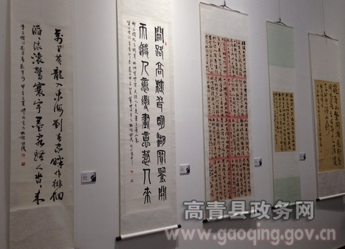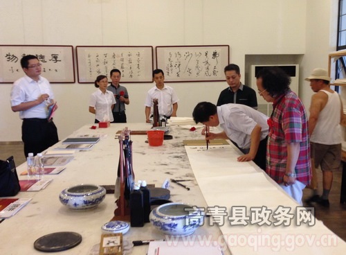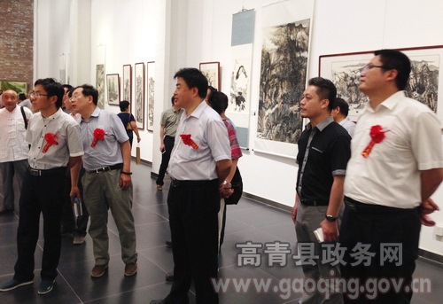 7月21日,"风行水上"淄博高青、苏州相城书画联展在国井集团醉书馆举行。苏州相城区委宣传部、文体局、书协、美协相关领导,省书法协会副主席、市书法协会主席赵长刚,县领导徐培栋、张守伟参加活动。
