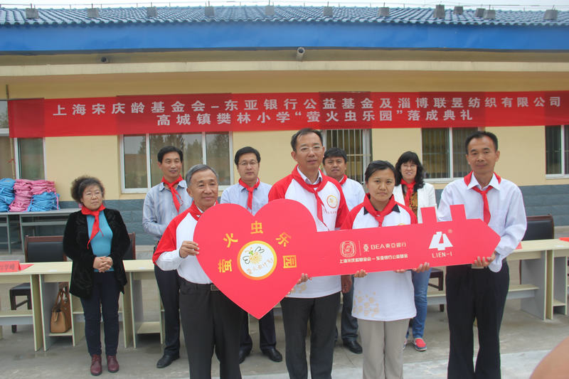 9月11日,由上海宋庆龄基金会—东亚银行公益基金(下简称“东亚银行公益基金”)捐建的全国范围内第42座“萤火虫乐园”在高青县高城镇樊林小学正式落成,该乐园由东亚银行公益基金与其爱心合作伙伴——淄博联昱纺织有限公司共同冠名捐建,这也山东省内的第3所乐园。来自高青县政府、县教育局、高城镇政府、东亚银行(中国)有限公司(下简称“东亚中国”)总行和济南分行的十余位嘉宾出席了落成典礼。