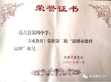 为进一步深化中小学德育品牌创建活动,提升中小学德育工作水平,市教育局在全市组织开展第二批中小学德育品牌评选活动。我县认真组织各相关学校积极参加,共推报德育品牌学校5所,经市局组织专家评审与实地考察、审核,高青县实验中学《法纪教育护航美好明天》、高青县第四中学《养成教育》、高青县木李镇新徐完全小学《端正写字 方正做人》,荣获第二批“淄博市德育品牌”称号。同时,为进一步扩大德育品牌的影响力和推广价值,发挥德育品牌示范带动作用,市教育局在市教育局网站、淄博教育发布等网络平台以“图说视频”的形式进行网上展示了,我县三所学校德育品牌视频均被展示。
