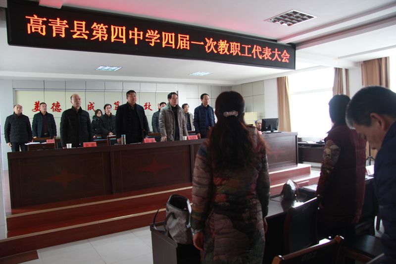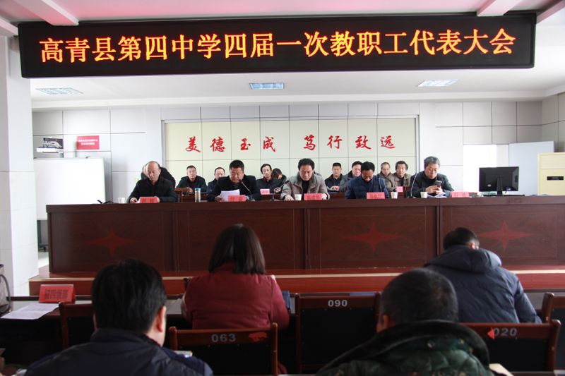 近日,高青县第四中学四届一次教职工代表大会隆重开幕。本次大会共有正式代表92人,参会代表82人,符合法定程序。