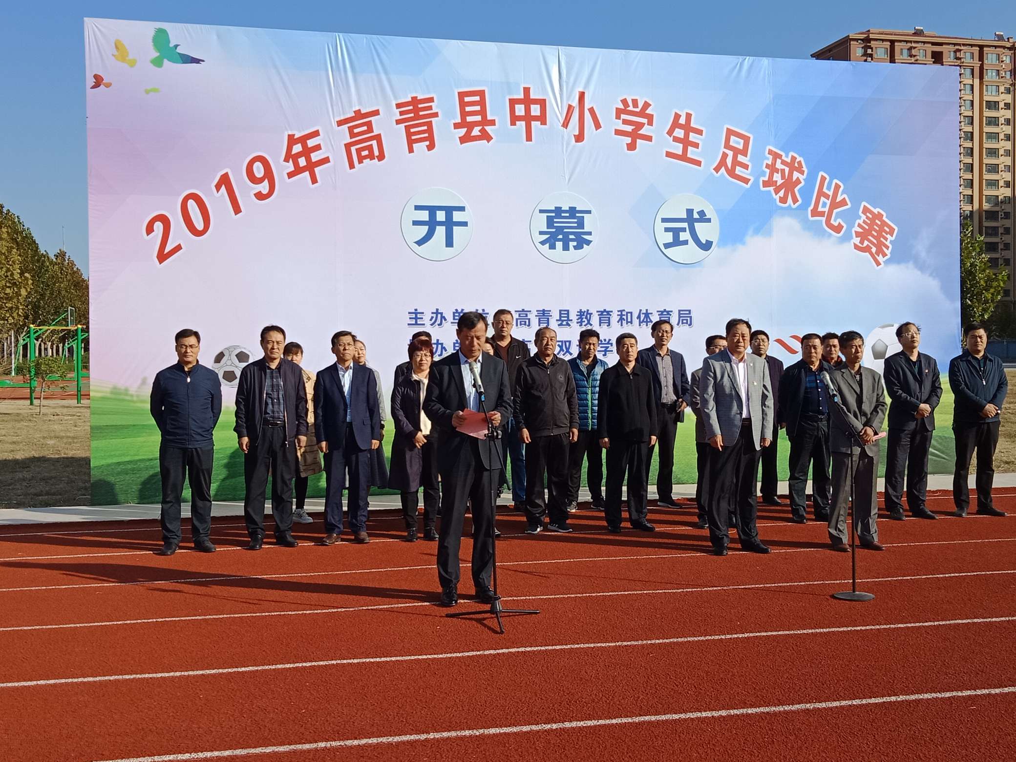 10月14日,高青县中小学生足球比赛在高青双语学校拉开帷幕。县教育工委常务副书记、县教体局党组书记、局长张玉江参加开幕式并为比赛开球。县教体局党组成员、县体育事业服务中心主任何传江致开幕词,县教体局党组成员、县教体局副局长王爱国主持开幕式。 近年来,我县学校体育工作始终坚持“健康第一”的指导思想,认真贯彻落实国家关于发展足球运动的指示精神,大力开展校园足球运动,培养了学生坚毅顽强的意志品质和团结协作精神,让学生体验了足球热情、享受足球乐趣、挥洒激情活力! 本次足球比赛将历时三周,时间长,赛程密,分别在双语学校和芦湖学区中心小学举办。 全县各学区主任、县属学校(民办学校)校长、裁判员、教练员、各初中足球队运动员参加了开幕式。 |