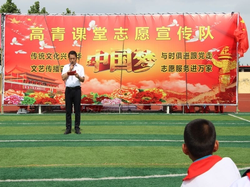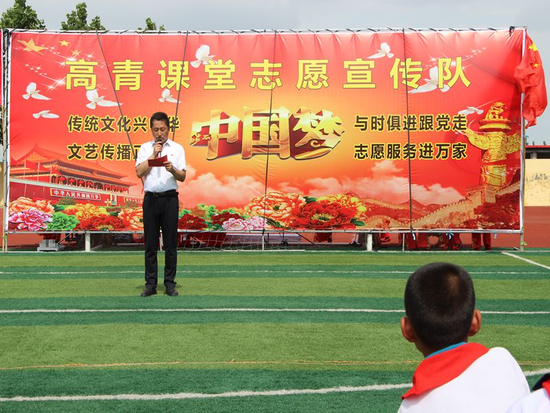 文艺汇演在中心小学校长贾坤辉、高青课堂志愿服务队负责人刘树伟老师精彩的致词中拉开了序幕。