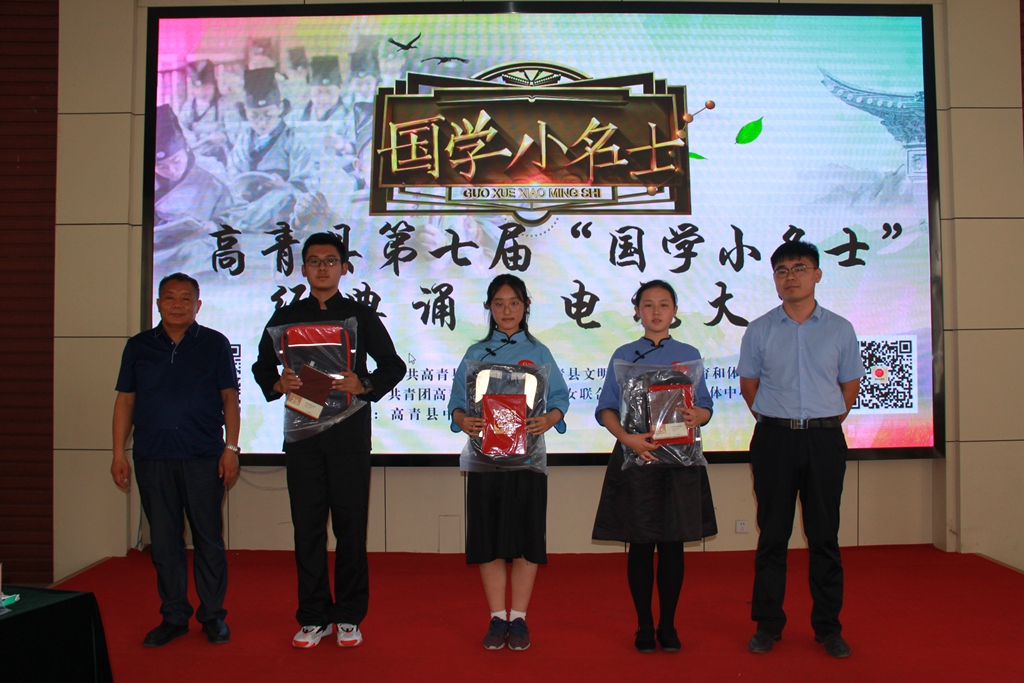 最终,高青县中心路小学的王浩然、高青县第一中学成文琪2名优秀选手从来自全县27个单位的39名选手中脱颖而出,分别获得高青县第七届“国学小名士”经典诵读电视大赛小学组和中学组冠军。