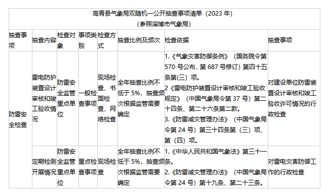 高青县气象局2023年度 “双随机、一公开” 抽查事项清单