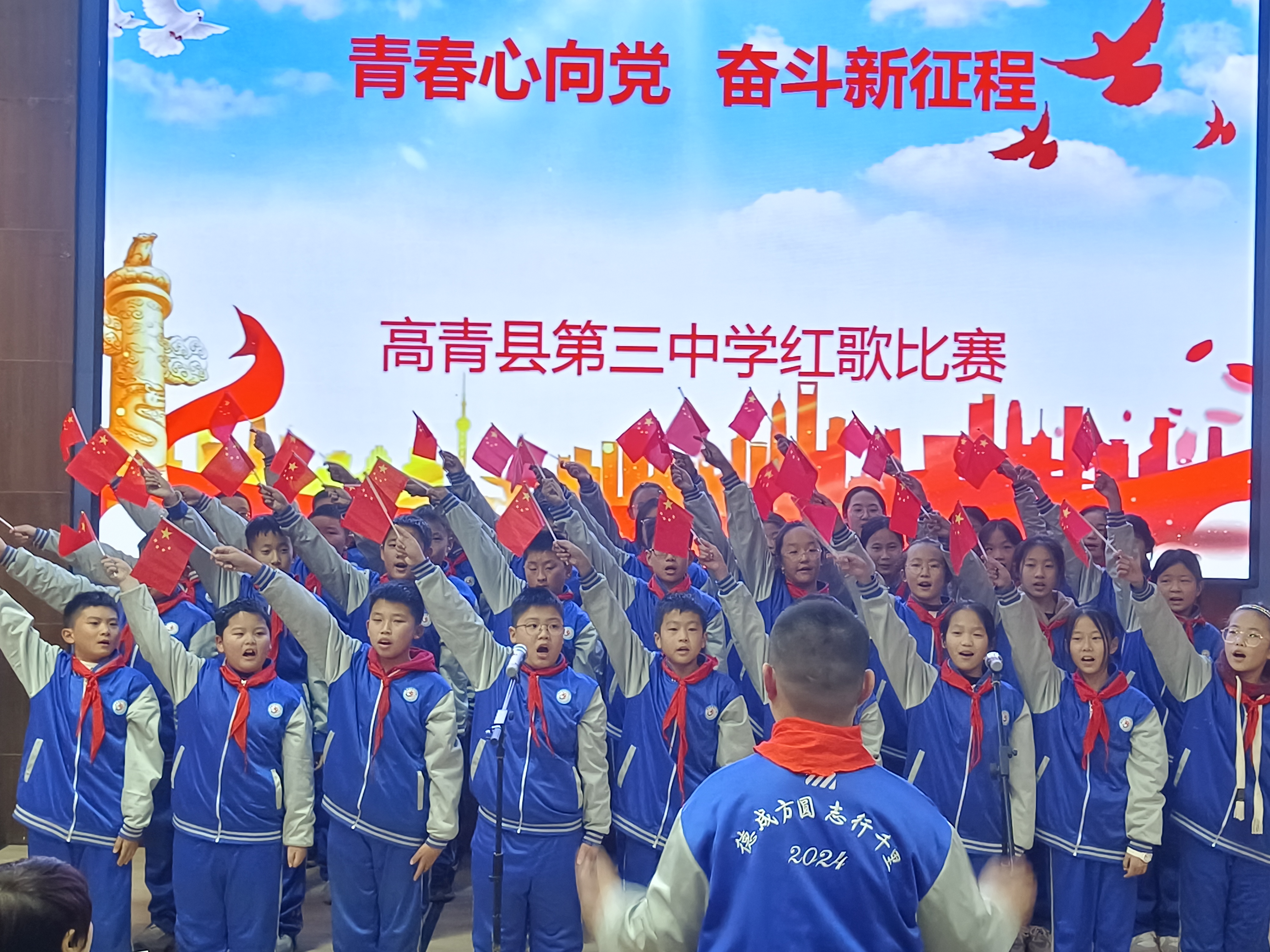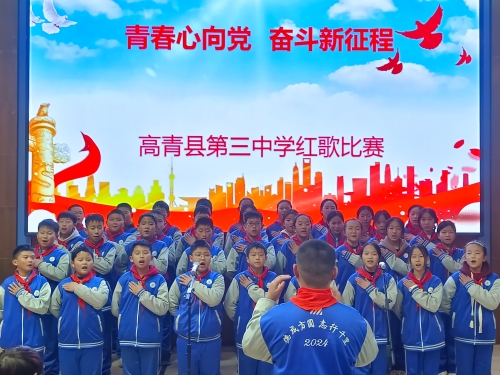 为弘扬爱国主旋律,增强“感党恩,听党话,永远跟党走”的坚定信念,激励广大青年学生继承和发扬民族精神,全面展现青年学生奋发进取的精神风貌,12月5日,高青县第三中学在学校大会议室举行以“青春心向党,奋斗新征程”为主题的红歌比赛。