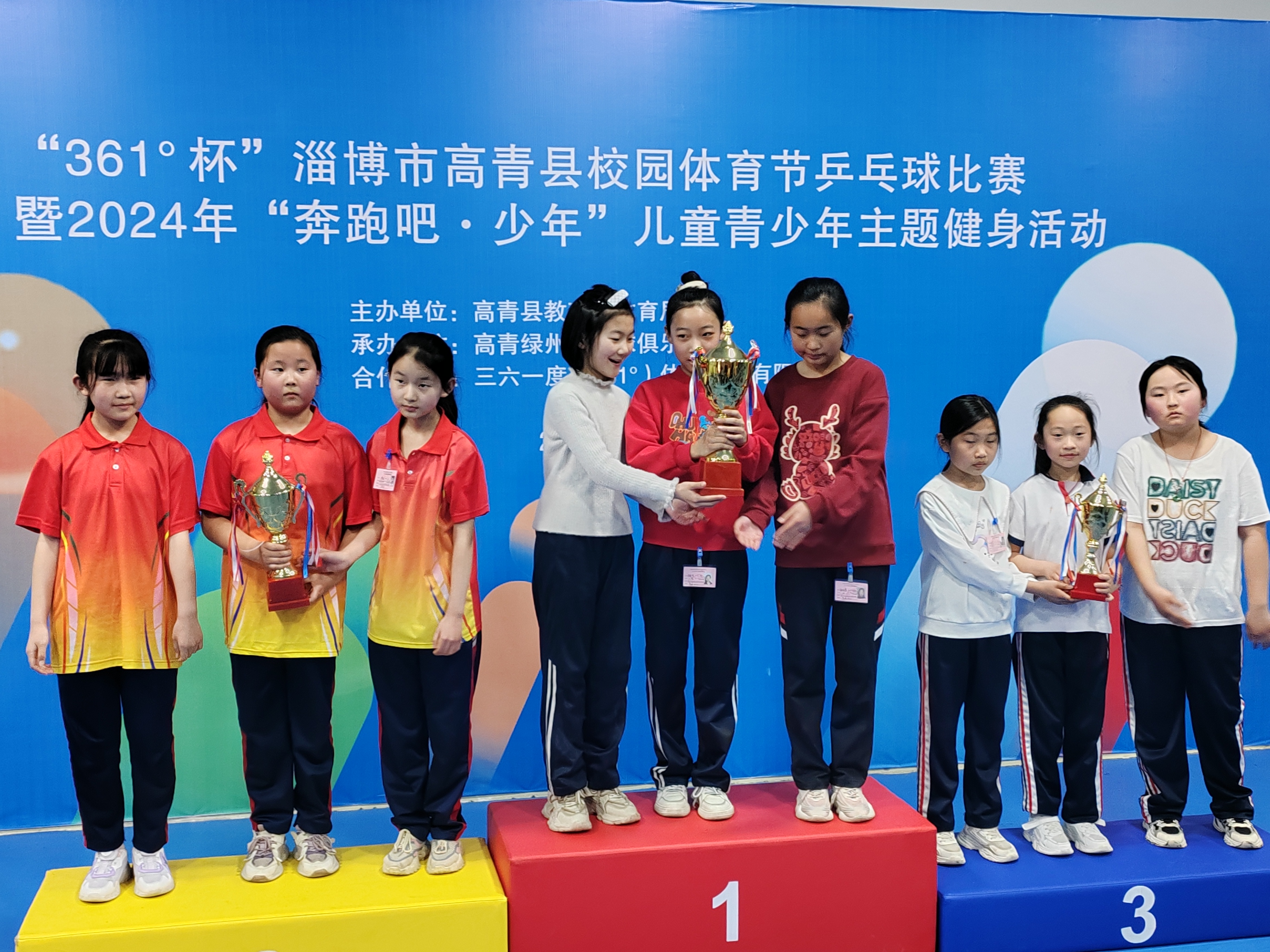 2024年3月27日—29日,“361°杯”2024年高青县校园体育节乒乓球比赛在高青绿州乒乓球俱乐部顺利举办,来自全县各中小学校的126名运动员参加了本次活动。