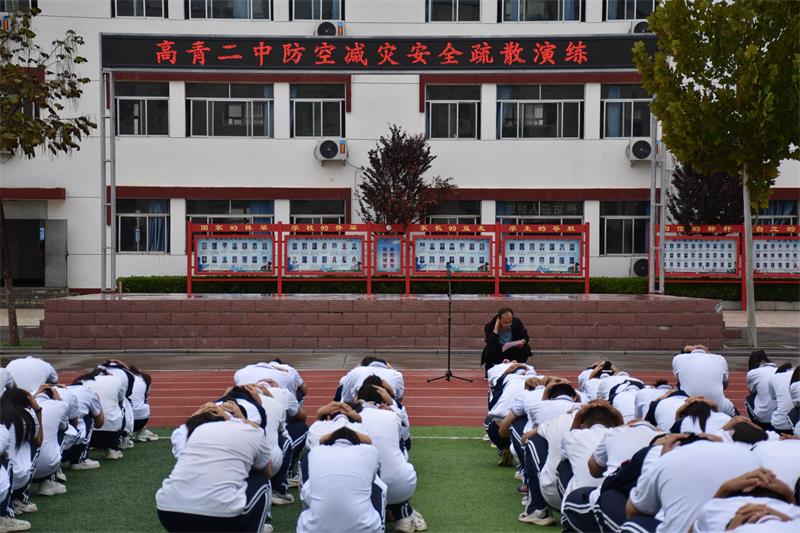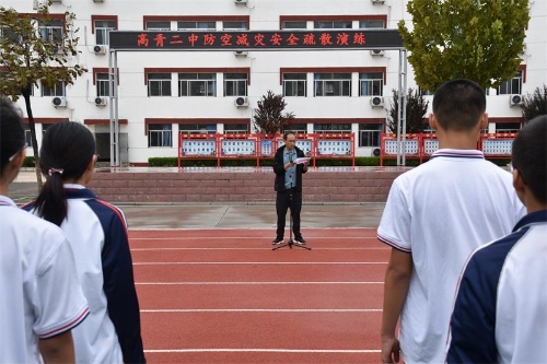 9 月 18 日,随着防空警报的响起,高青二中全体师生迅速响应,一场紧张有序的防空防灾疏散安全演练正式拉开帷幕。