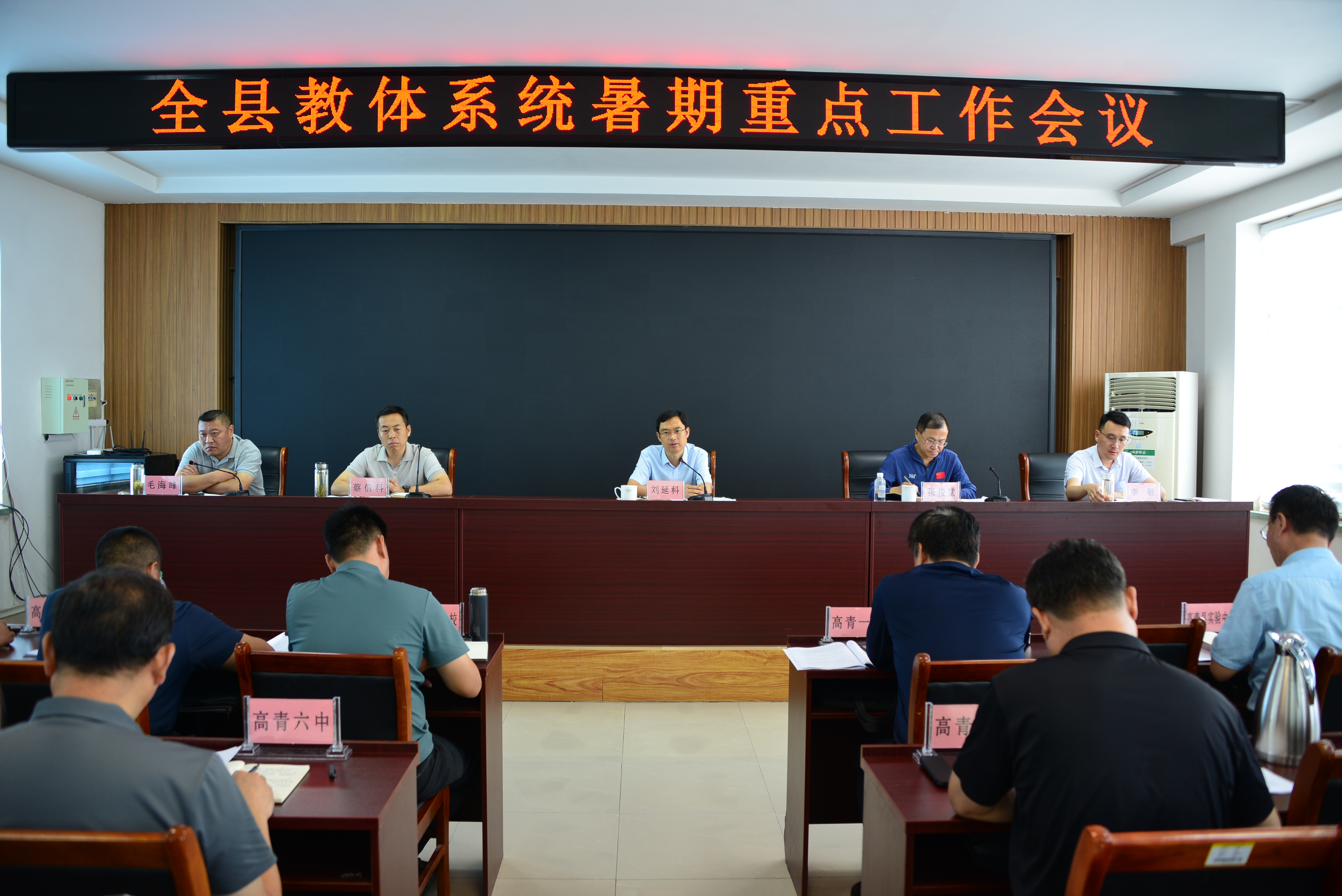 6月30日,高青县教体系统暑期重点工作会议召开。县委教育工委常务副书记、县教体局党组书记、局长刘延科主持会议并讲话。局党组成员张俊堂、蔡信科、李敏、毛海峰,各学校校长、书记,县属幼儿园园长,局机关有关科室负责人参加会议。