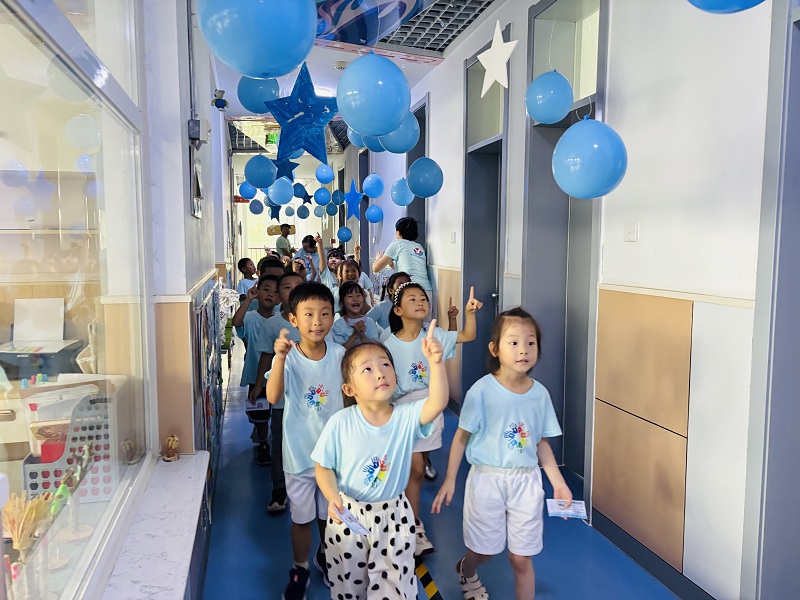活动伊始,孩子们手持专属“梦想船票”,有序穿越装饰着气球、星星与船锚的“时光隧道”,在老师的暖心鼓励中迈入仪式主会场。随后,中班生活回忆短片缓缓播放,熟悉的游戏、学习场景唤起孩子们的美好记忆。