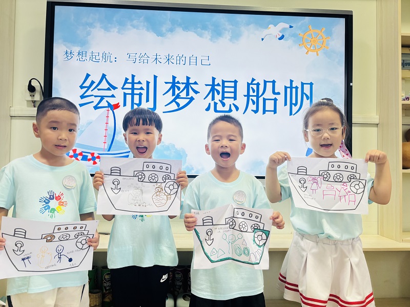 仪式中,幼儿园相关负责人作为“时光见证人”送上祝福,教师为孩子们佩戴“大班成长勋章”,带领大家庄严宣读“大班承诺”。孩子们还将绘制着大班梦想的“船帆”投入“时光胶囊”,封存对未来的期待。