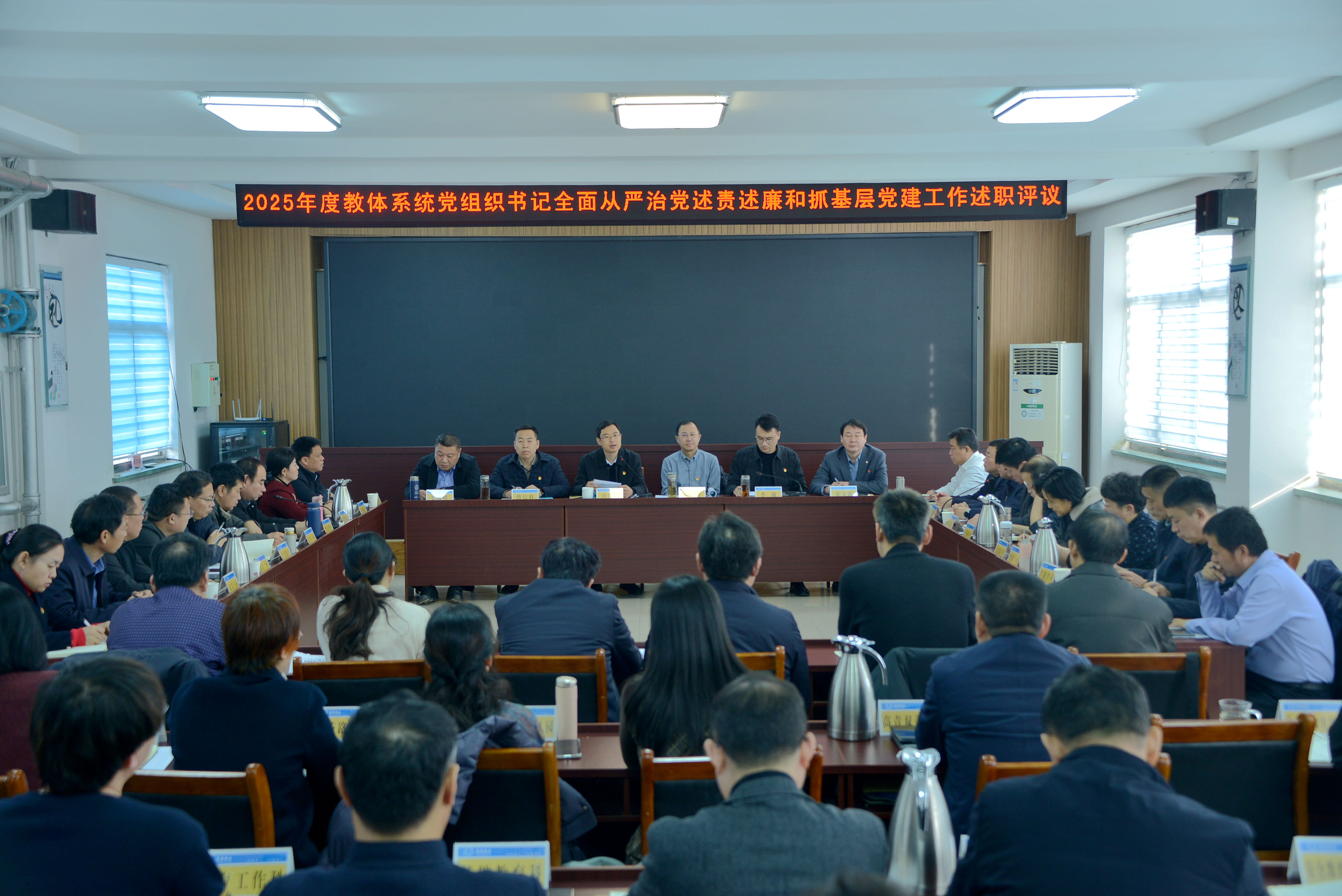 2月5日,2025年度全县教体系统党组织书记全面从严治党述责述廉和抓基层党建工作述职评议会议在县教体局举行。县委教育工委常务副书记、县教体局党组书记、局长刘延科作点评讲话,局党组成员张俊堂、蔡信科、李敏、毛海峰、宋文波参加会议,43个基层党组织书记做了述职。