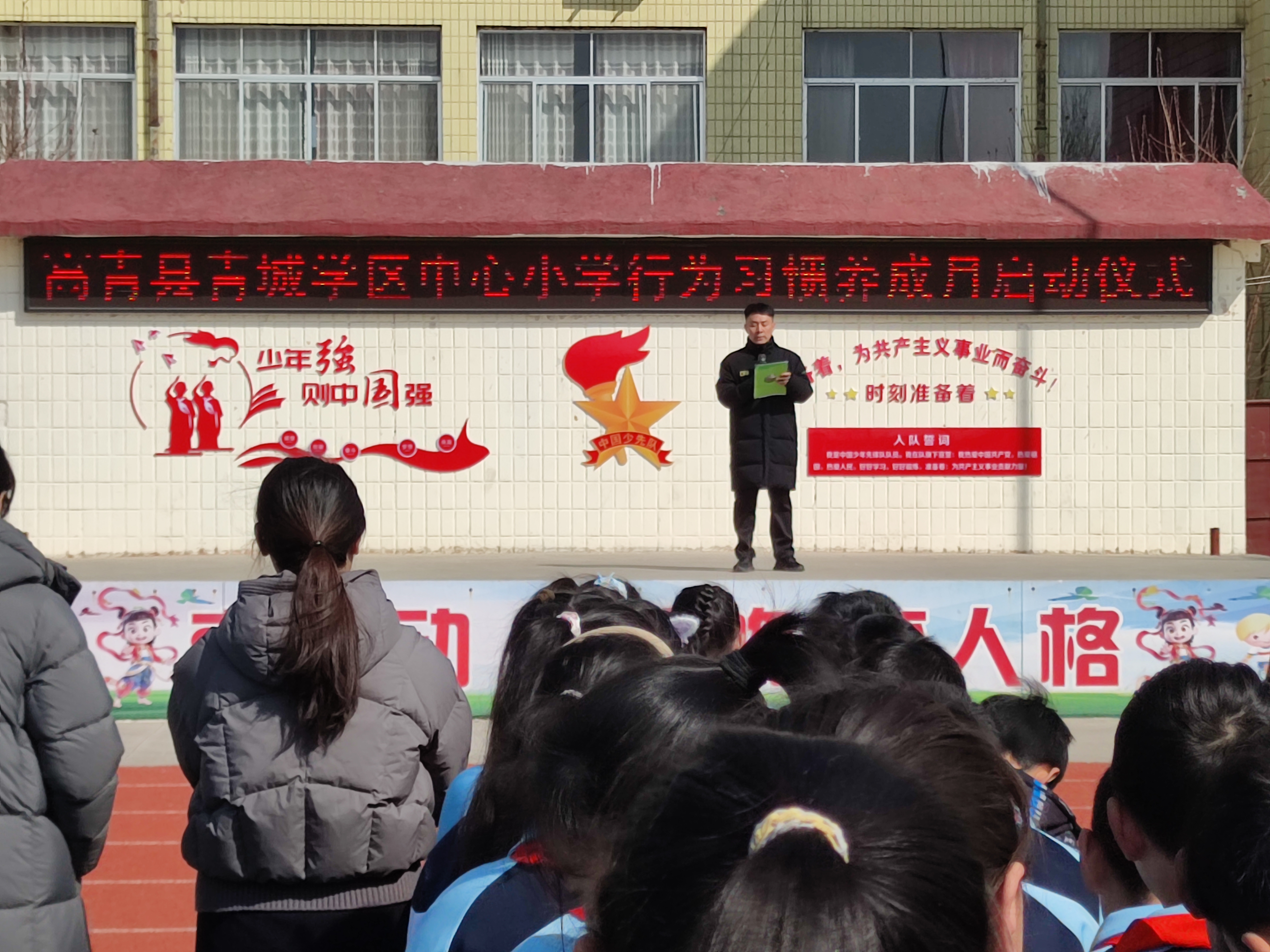 为全面落实立德树人根本任务,构建全员全过程全方位育人格局,近日,高青县青城学区中心小学全体师生在体育场举行文明班级颁奖仪式。通过树立管理标杆,引导全体师生共同参与学生管理,将日常班级行为规范转化为育人实践载体。