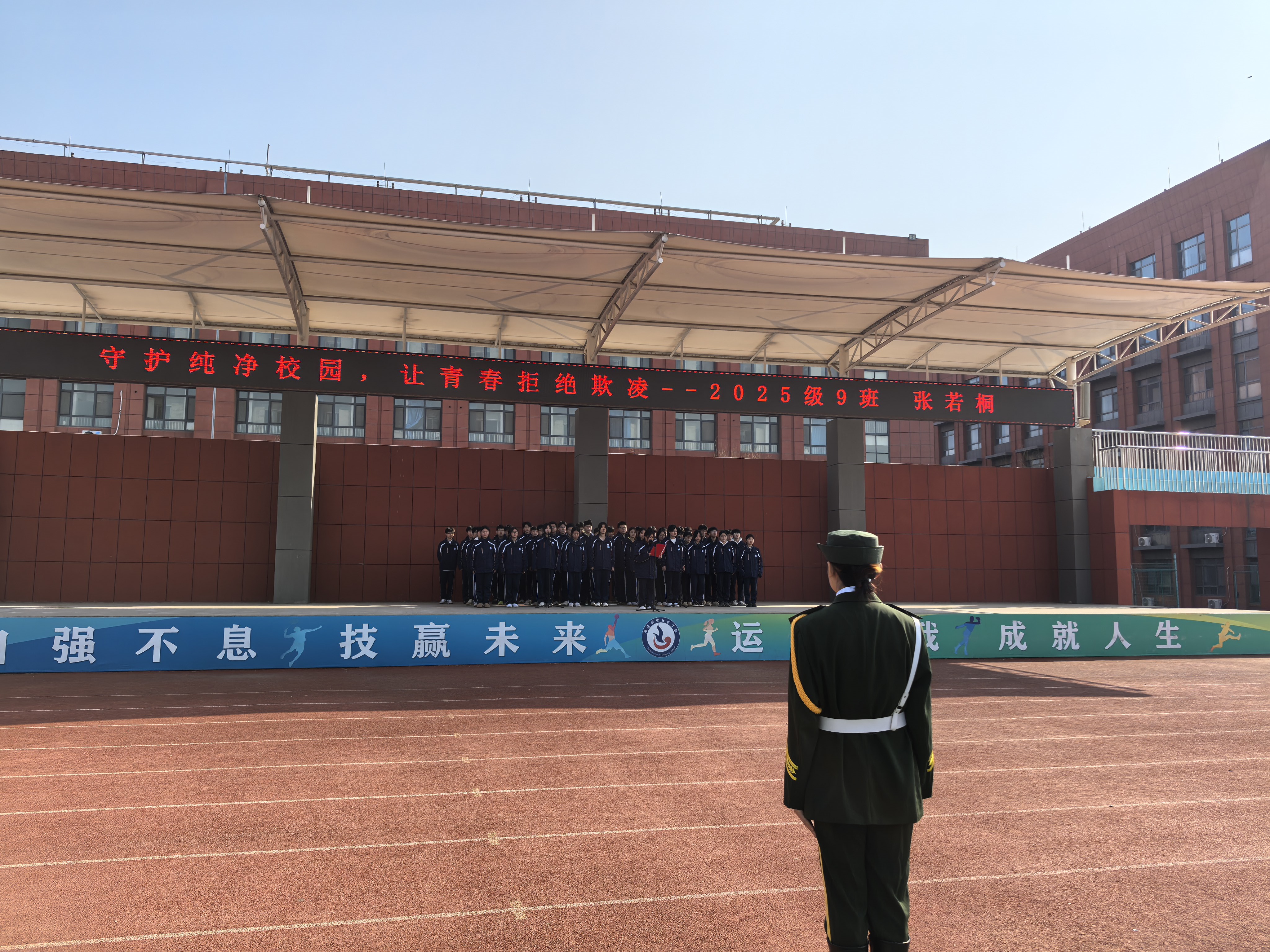 3月16日,淄博科技学校以“拒绝欺凌,守护成长——共建平安和谐校园”为主题,举行校园欺凌防治宣传教育周启动仪式,全校师生齐聚操场,正式拉开本次反欺凌系列宣传教育活动序幕。仪式伊始,25.9班学生代表以国旗下讲话的形式,结合自身观察与思考,发出“拒绝校园欺凌、守护青春成长”的真挚倡议,呼吁同学们友善待人、理性处事,为活动营造浓厚的教育氛围。