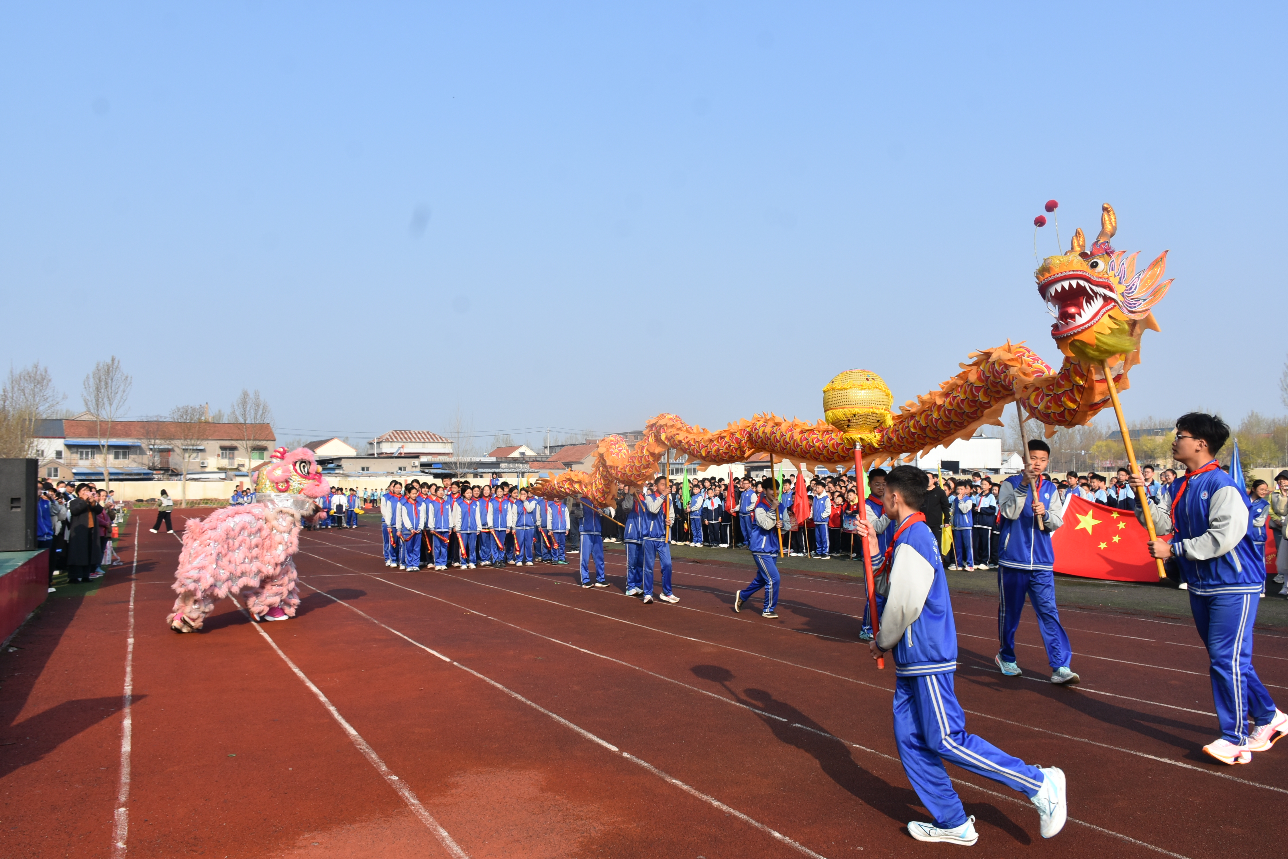 开幕式氛围浓厚、亮点纷呈。伴着激昂旋律,各班级方阵依次登场,特色舞蹈灵动鲜活,尽显青春朝气;武术操表演刚劲有力,展露少年坚韧果敢;红旗方阵整齐划一、气势如虹,鲜艳红旗迎风飘扬;舞龙队腾跃翻转、气势磅礴,舞狮队灵动腾挪、赢得满堂喝彩。各班励志条幅高悬,将拼搏精神融入细节,传统韵味与青春活力交织,为运动会拉开精彩序幕。