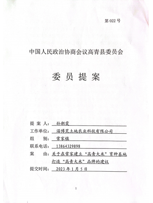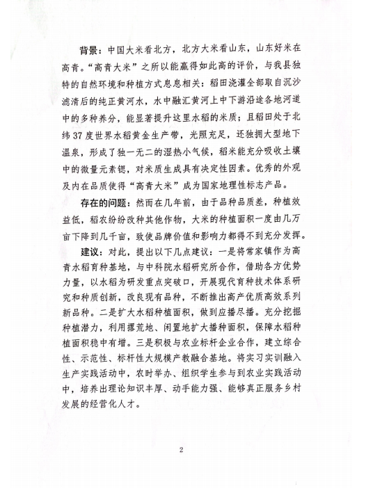 您提出的关于在常家建立“高青大米”育种基地 打造“高青大米”品牌的建议收悉,现答复如下: