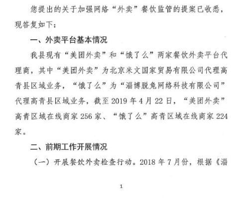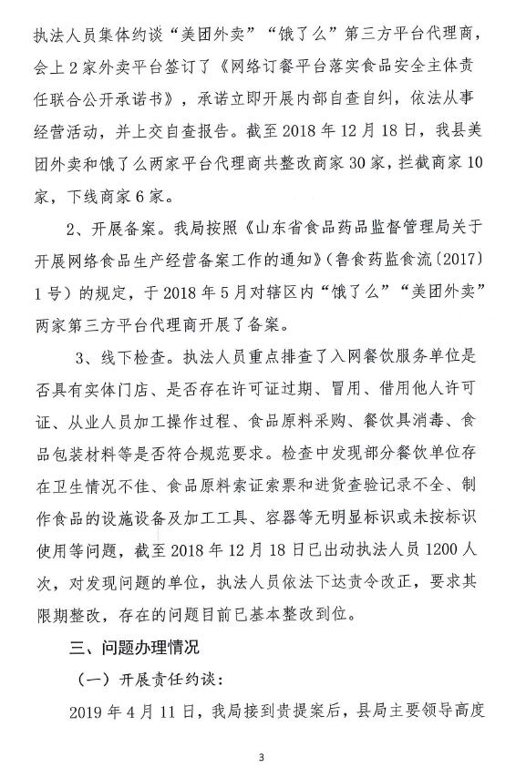 对加强网络“外卖”餐饮监管(县政协十四届三次会议第43号提案)的答复