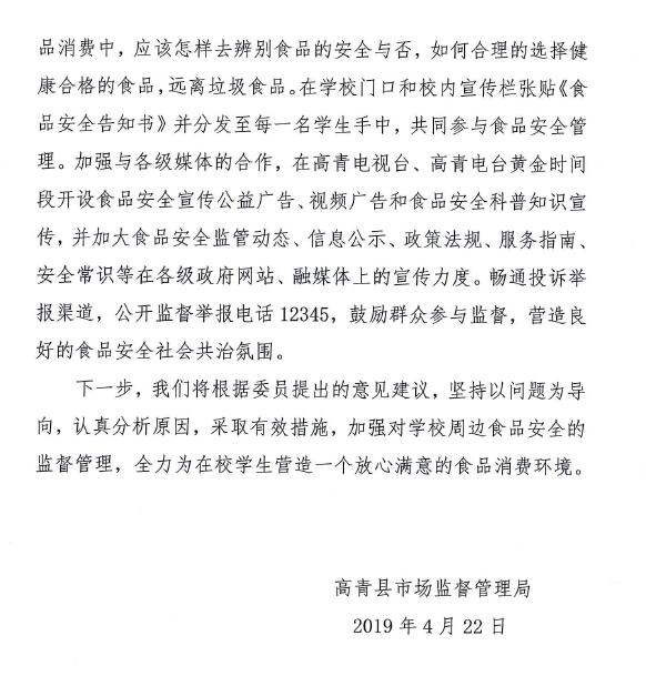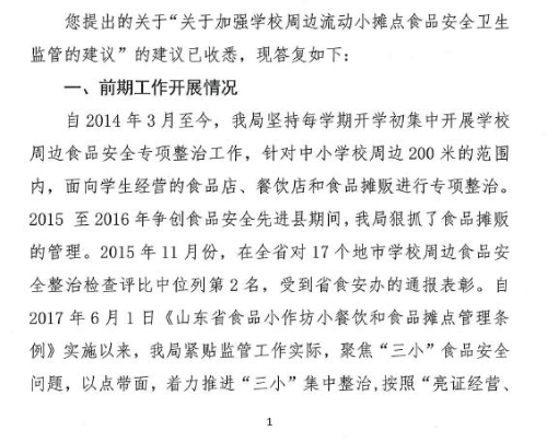 对加强学校周边流动小摊点食品安全卫生监管(县政协十四届三次会议第47号提案)的答复