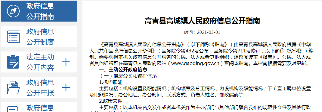 高青县高城镇人民政府信息公开指南
