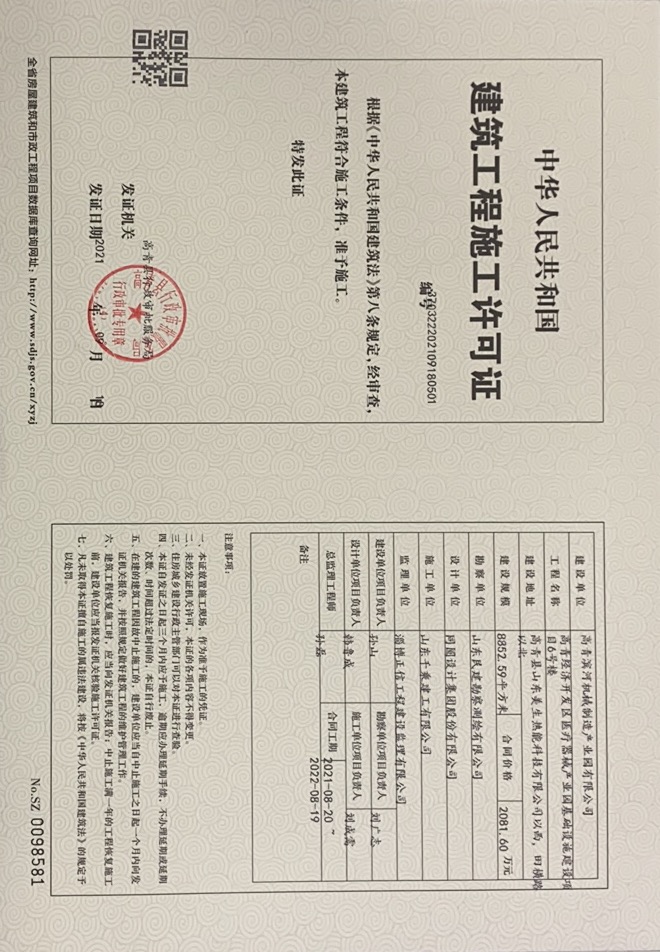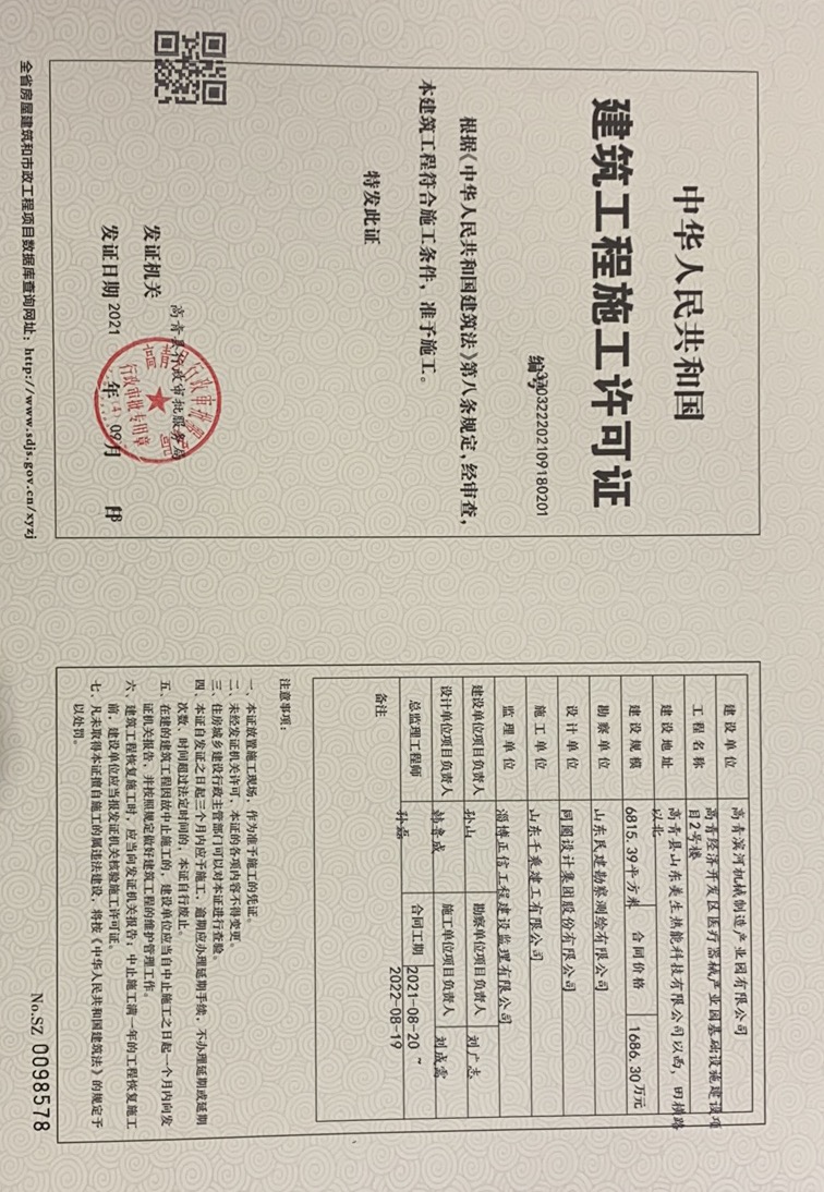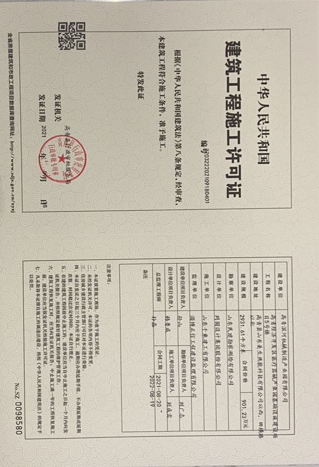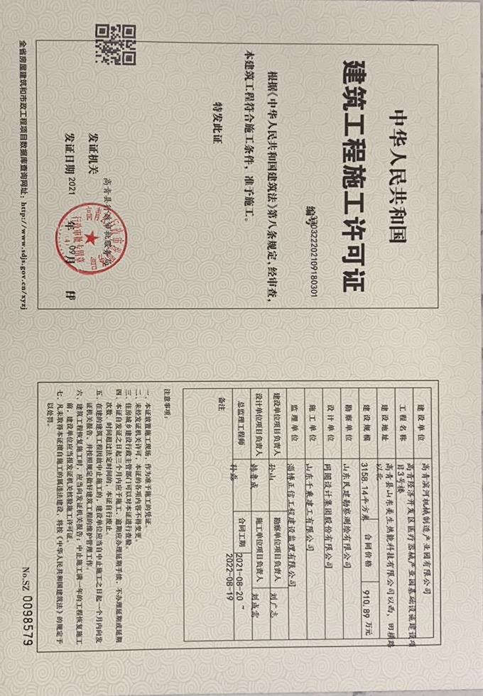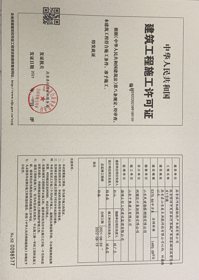 高青经济开发区医疗器械产业园基础设施建设项目建筑工程施工许可证