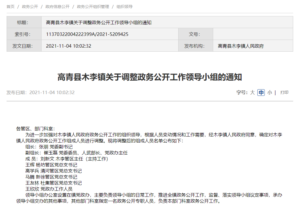 高青县木李镇人民政府信息公开指南