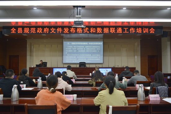 10月14日,全县规范政府文件发布格式和数据联通工作培训会召开,安排部署规范政府文件发布格式和数据联通工作,进一步明确任务、时限和标准,压实工作责任,确保按时高质量完成工作任务。