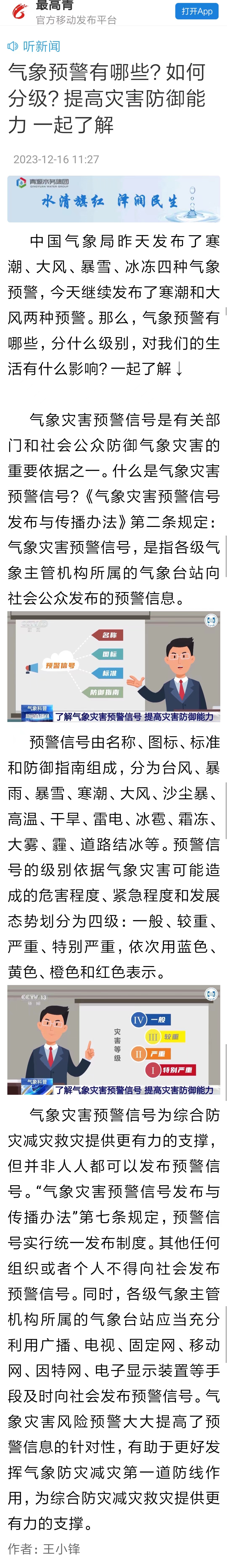 点击查看媒体解读:《气象预警有哪些?如何分级?提高灾害防御能力 一起了解》