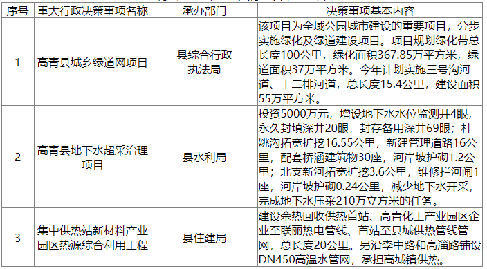 高青县2022年度重大行政决策事项目录