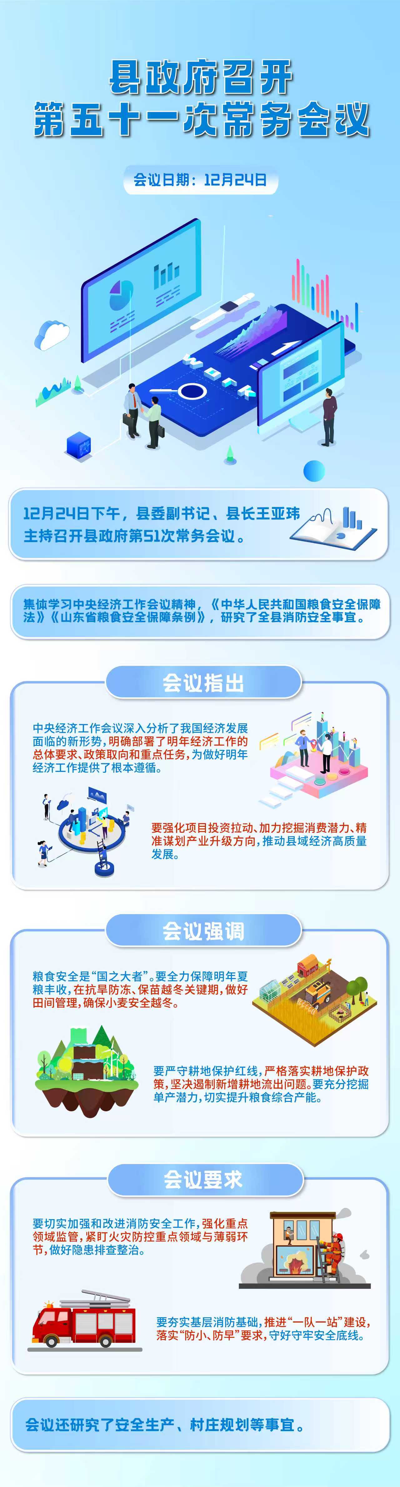 12月24日下午,县委副书记、县长王亚玮主持召开县政府第51次常务会议,集体学习中央经济工作会议精神,《中华人民共和国粮食安全保障法》《山东省粮食安全保障条例》,研究了全县消防安全事宜。