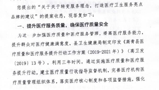 对打造医疗卫生服务亮点品牌(县十七届人大三次会议第72号提案)的答复