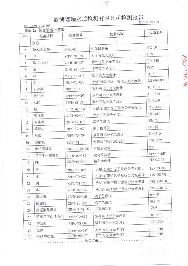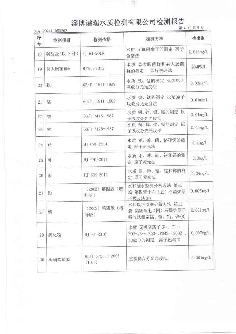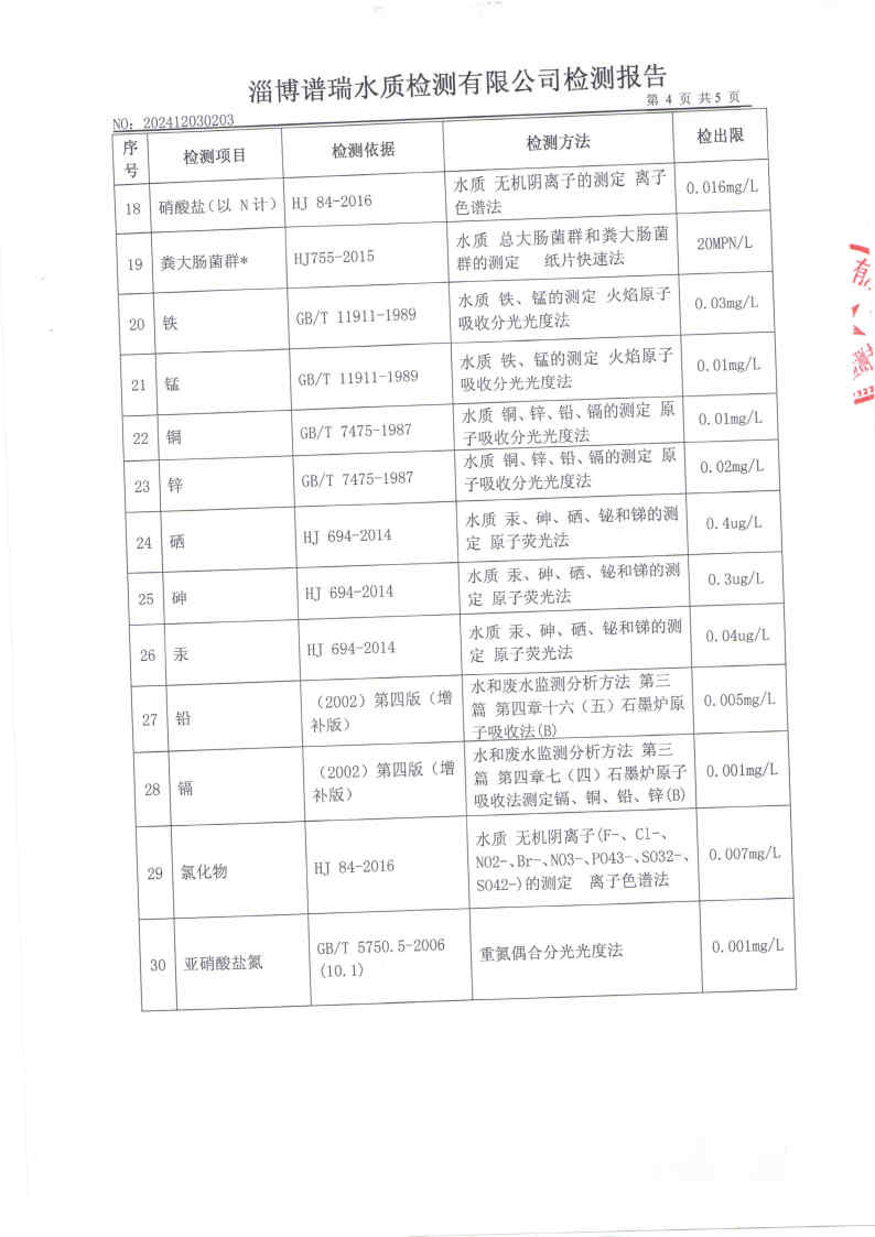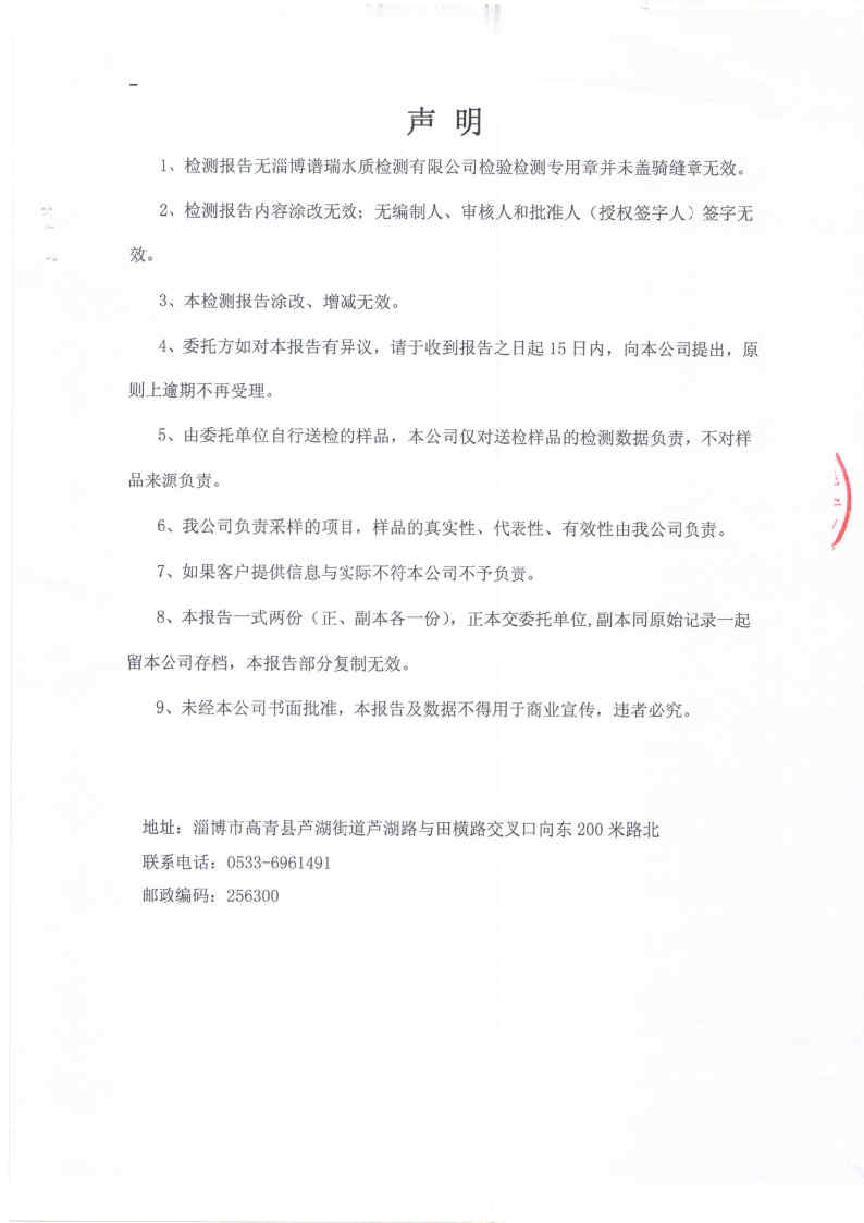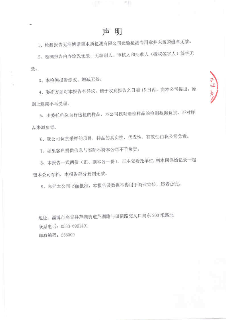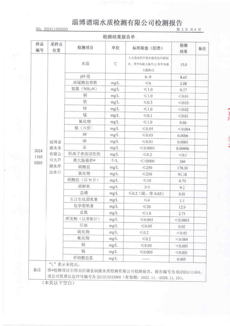 高青县大芦湖水库饮用水水源地水质情况公示(第四季度)