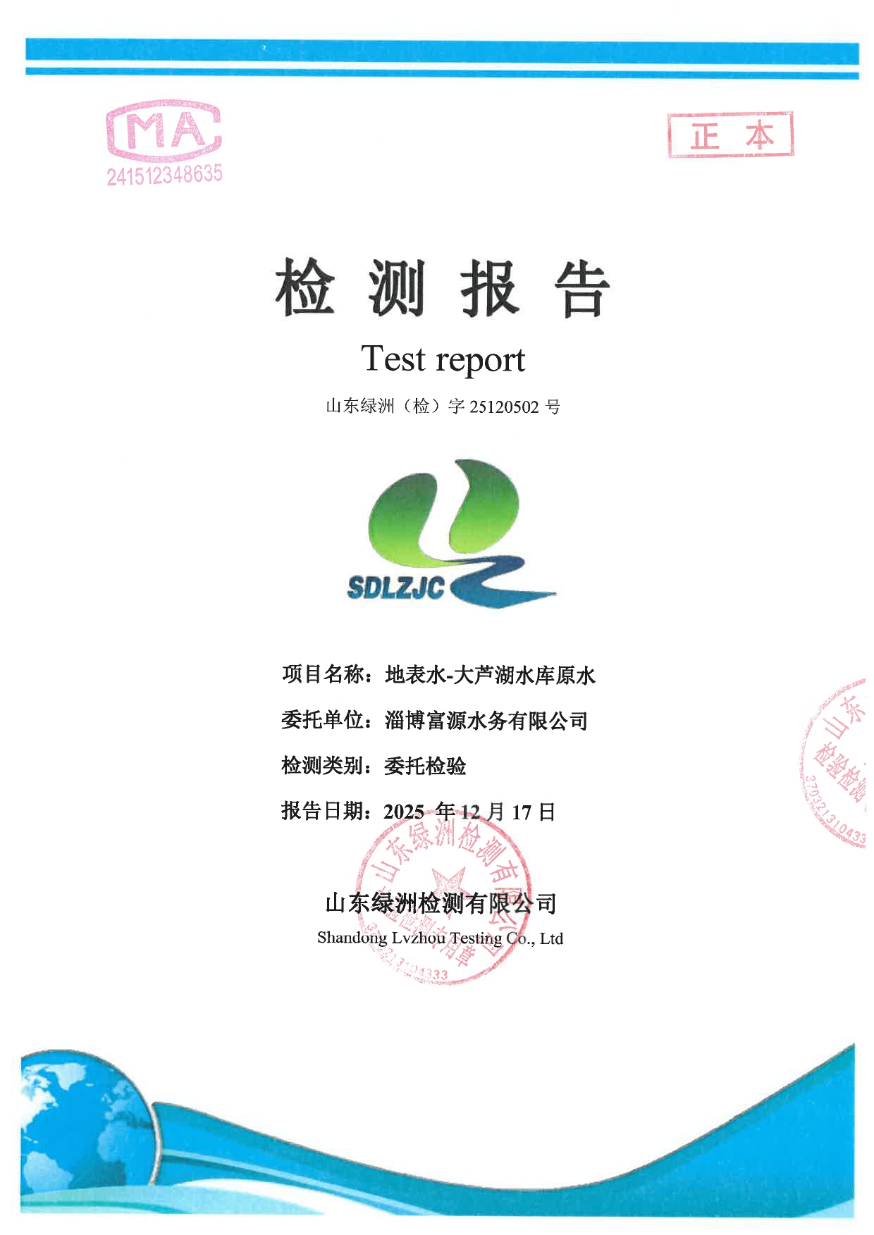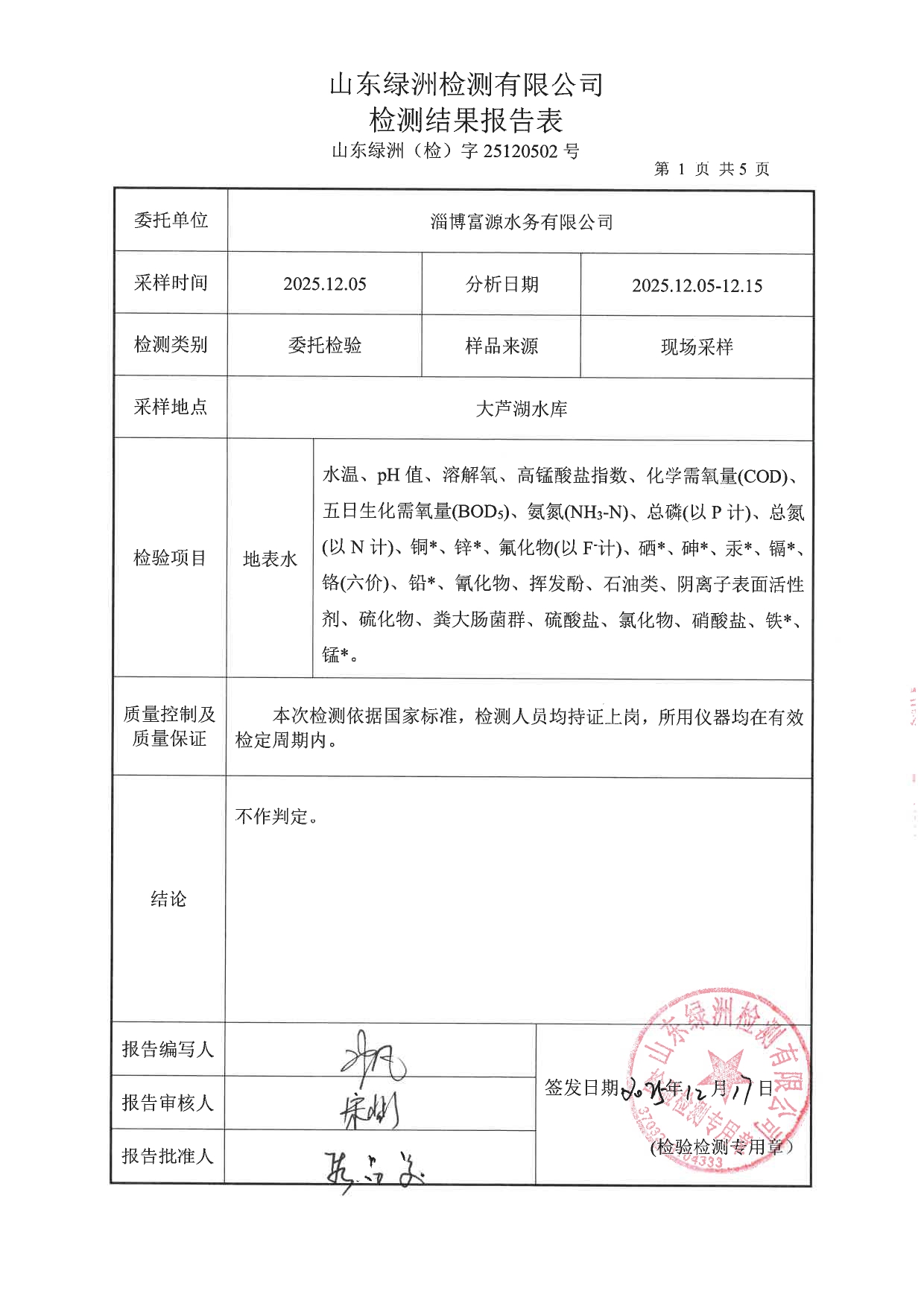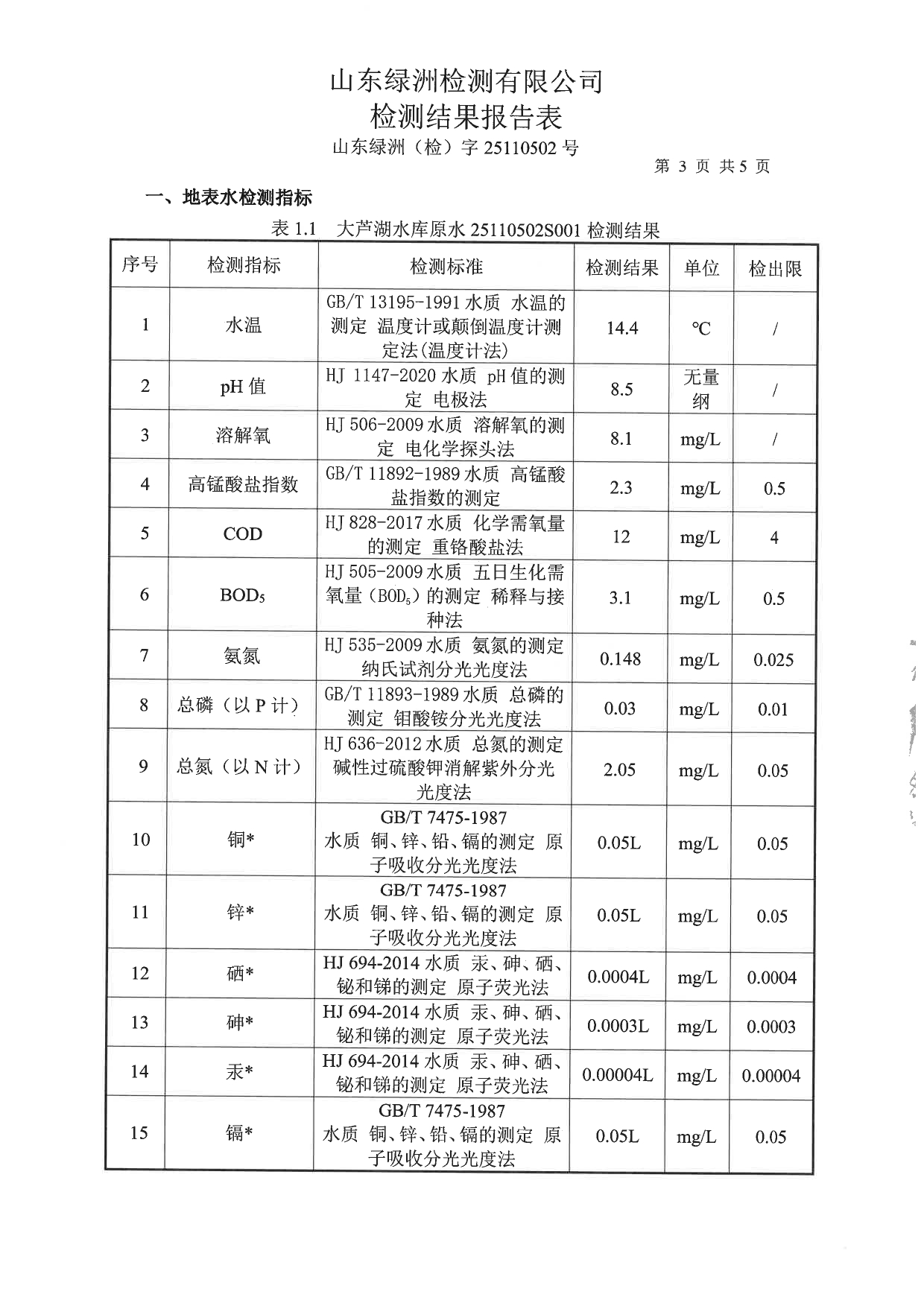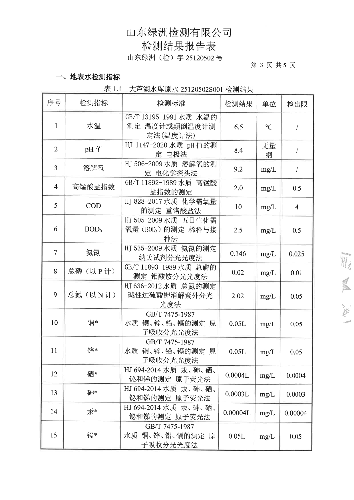 高青县大芦湖水库饮用水水源地水质情况公示(第四季度)