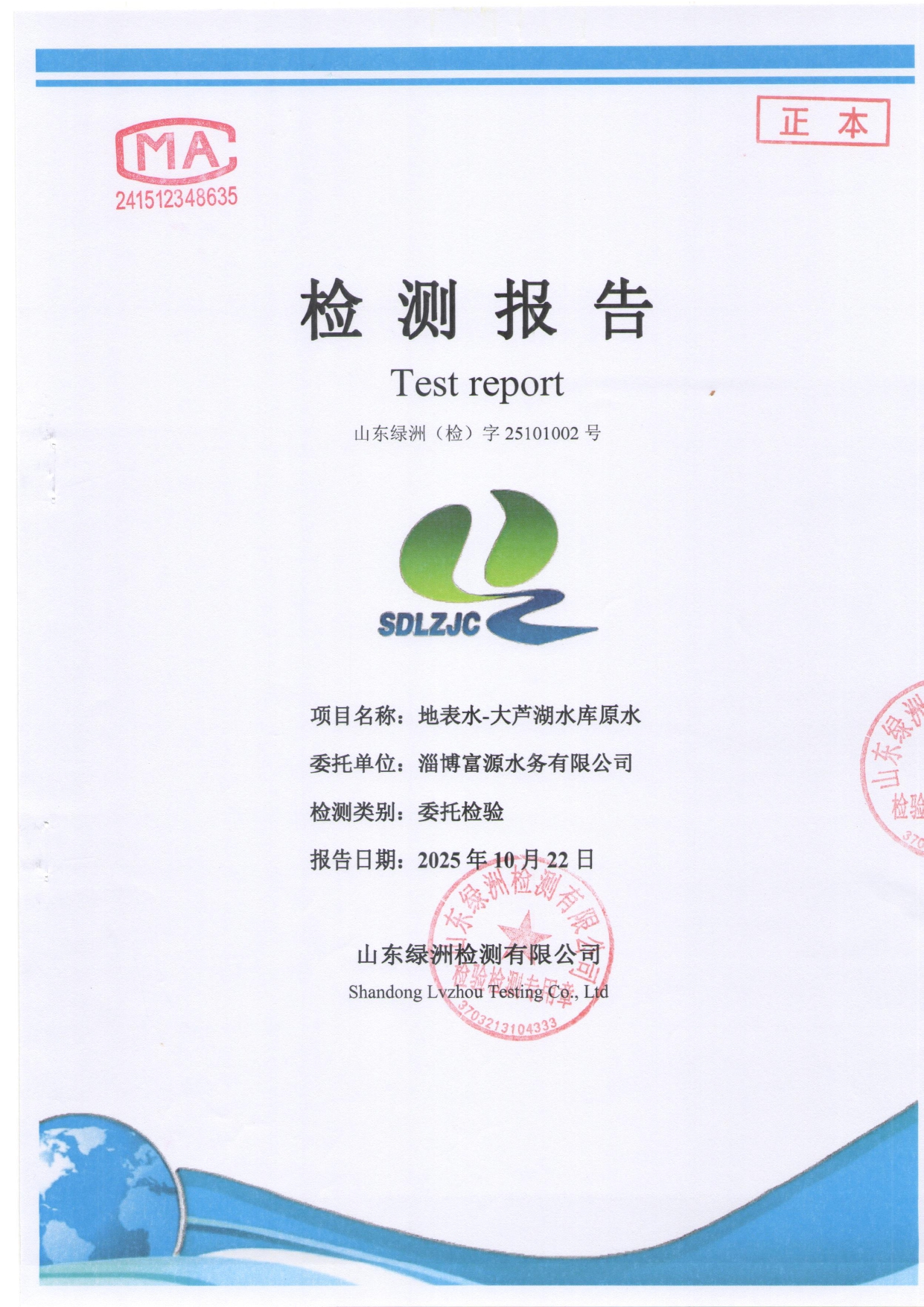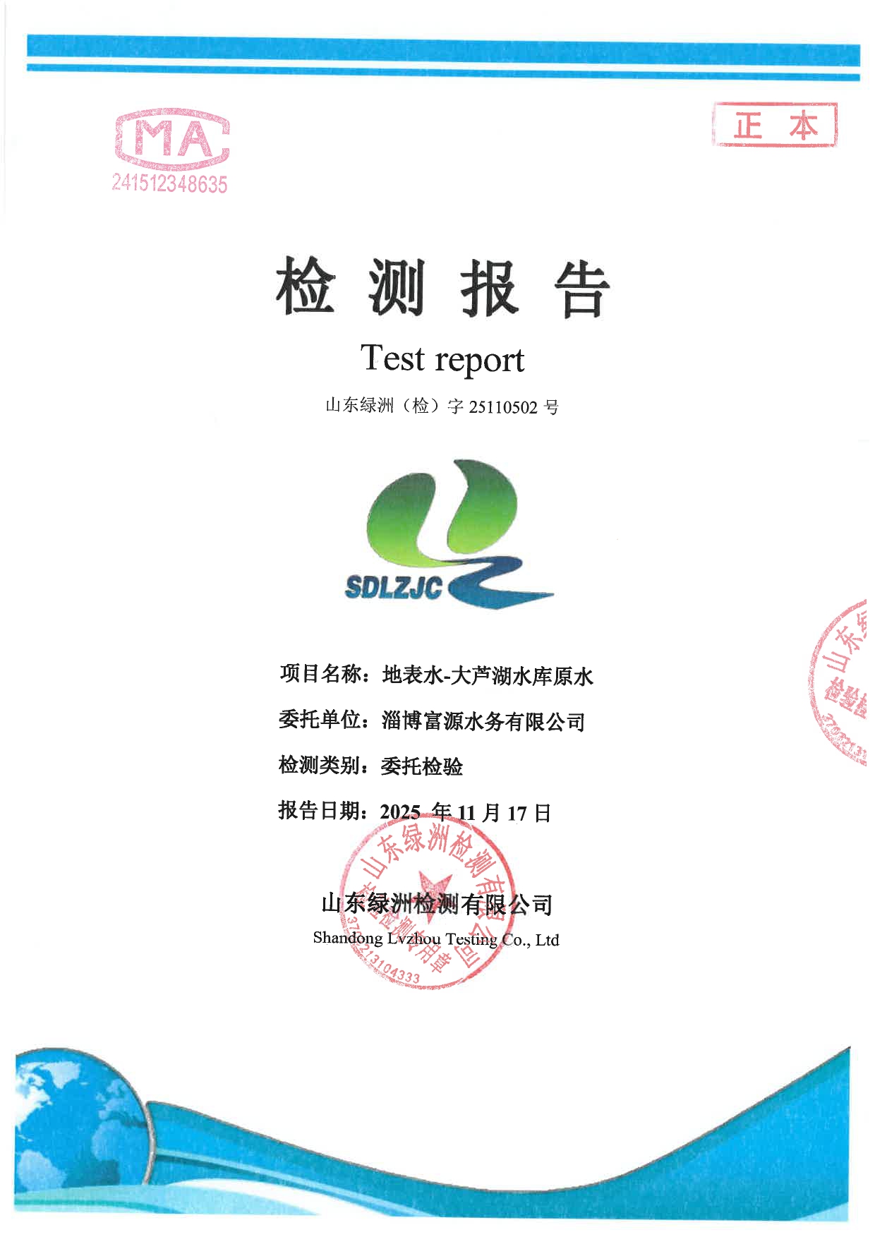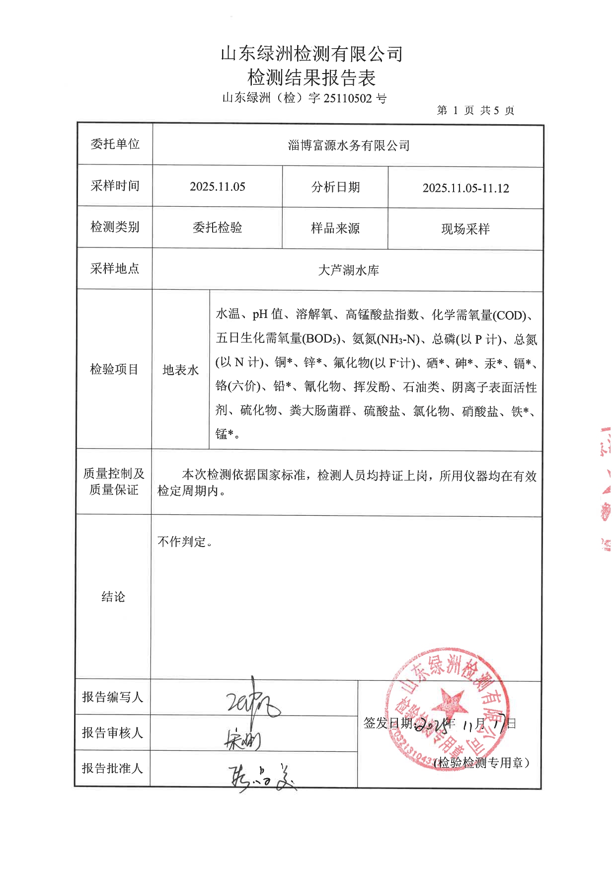 高青县大芦湖水库饮用水水源地水质情况公示(第四季度)