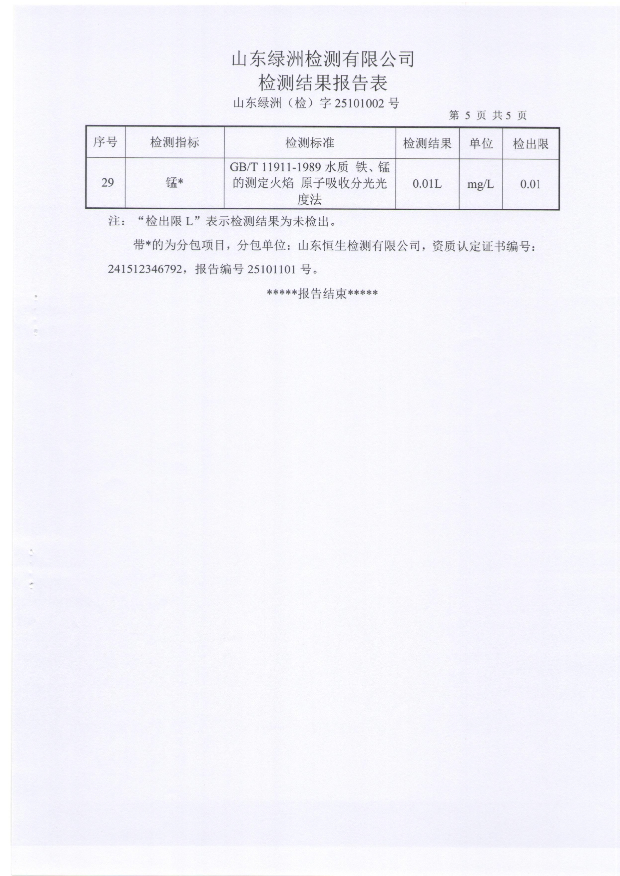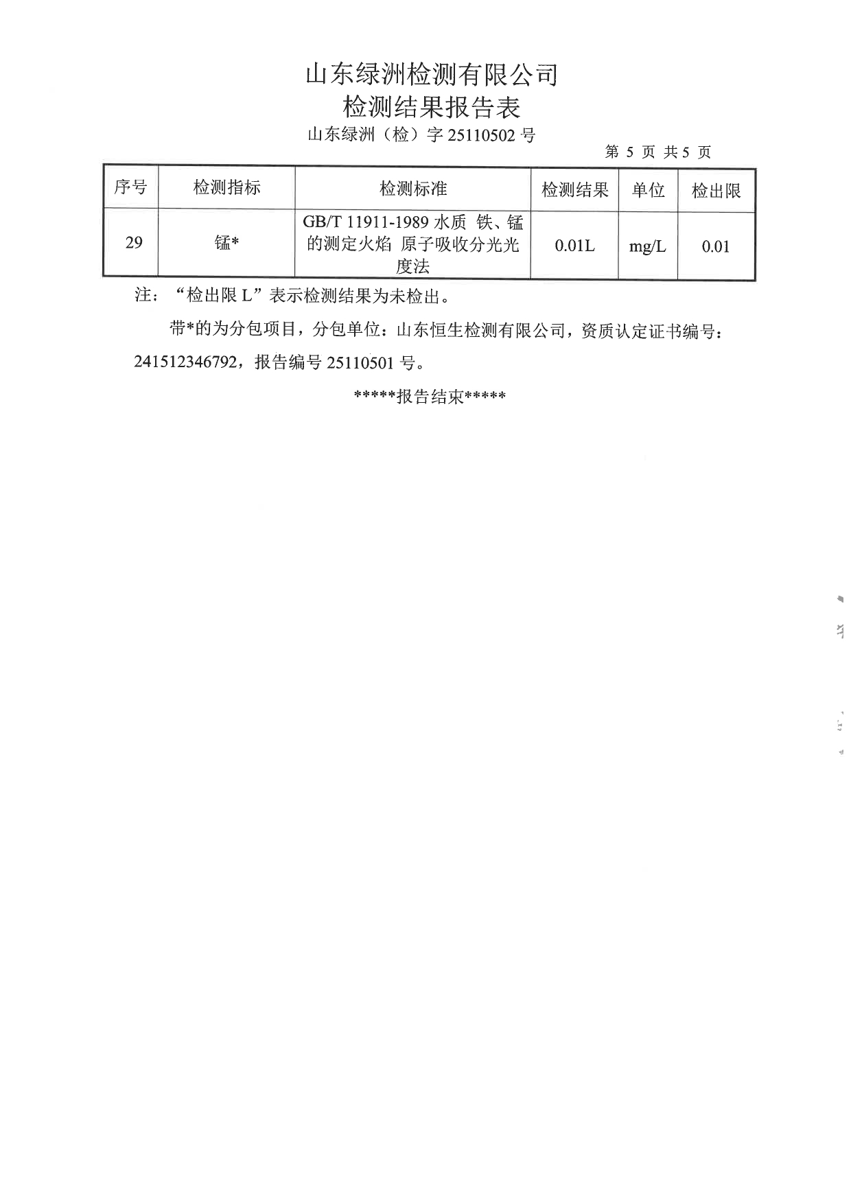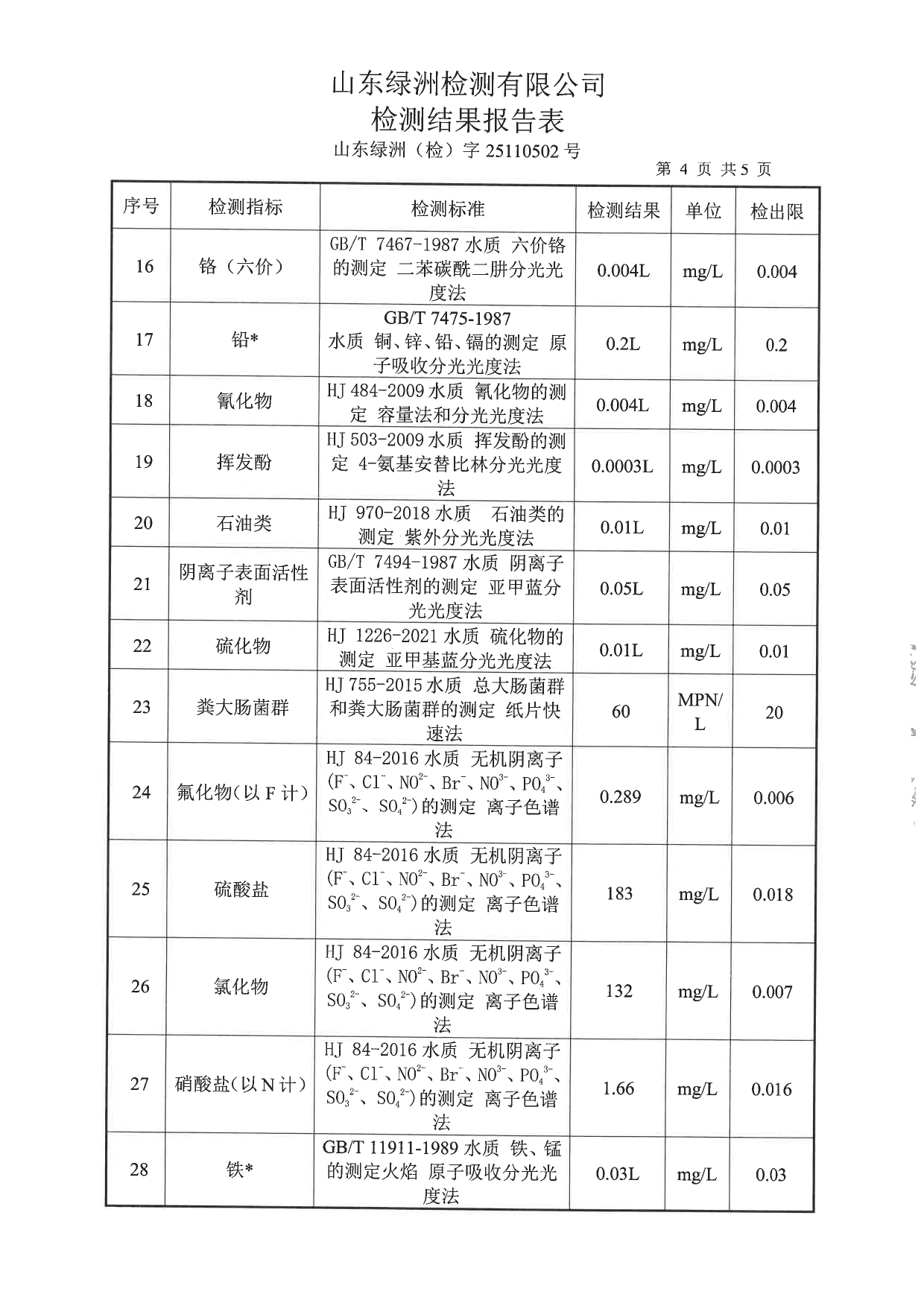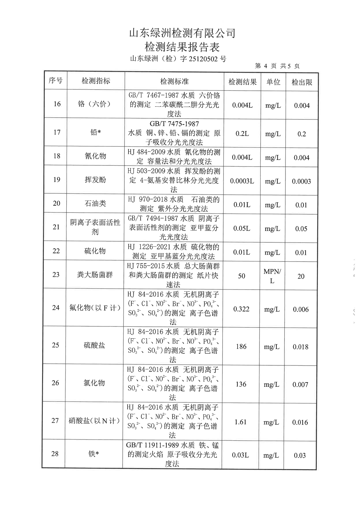 高青县大芦湖水库饮用水水源地水质情况公示(第四季度)