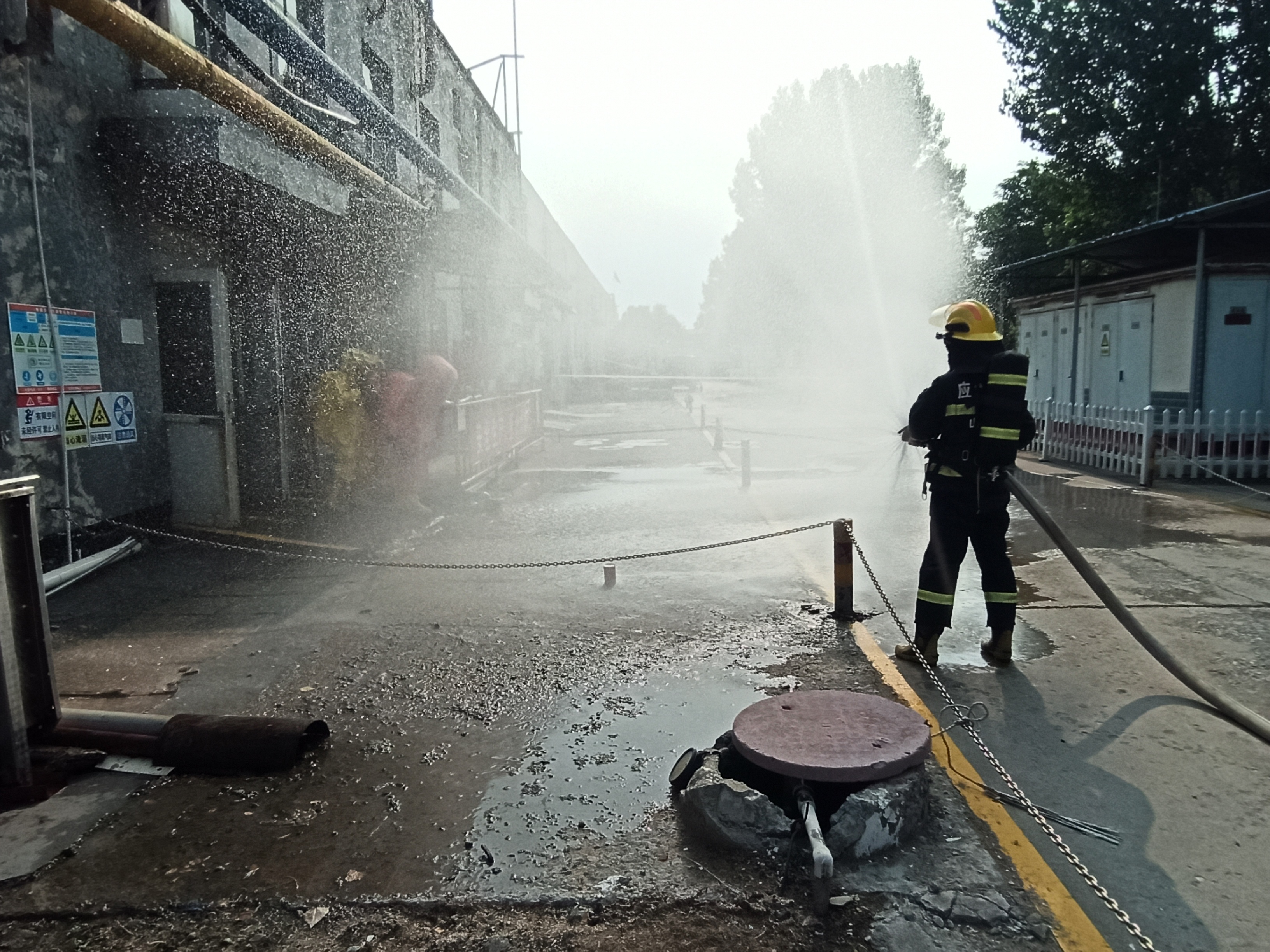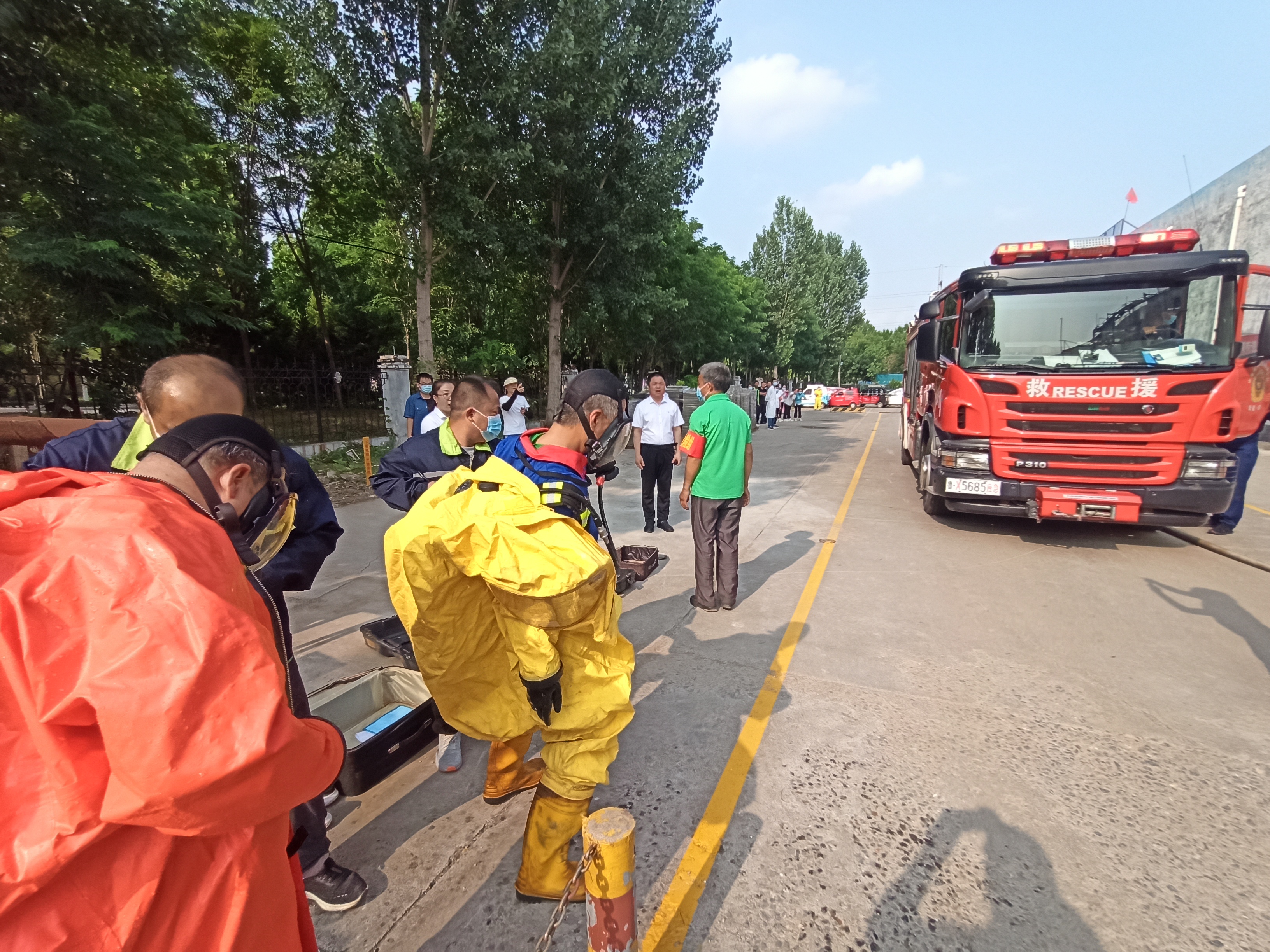 假设制冷机房的液氨储罐上方阀门因腐蚀老化原因发生液氨泄漏,接到应急救援队接到润美食品的救援电话,立即赶往现场参与救援行动。