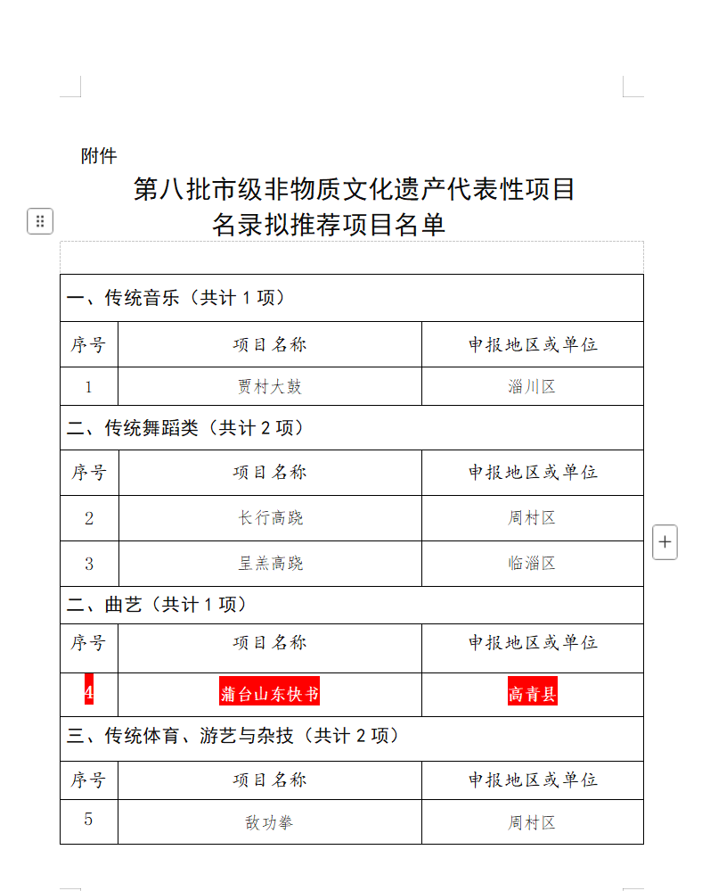 第八批市级非物质文化遗产代表性项目名录