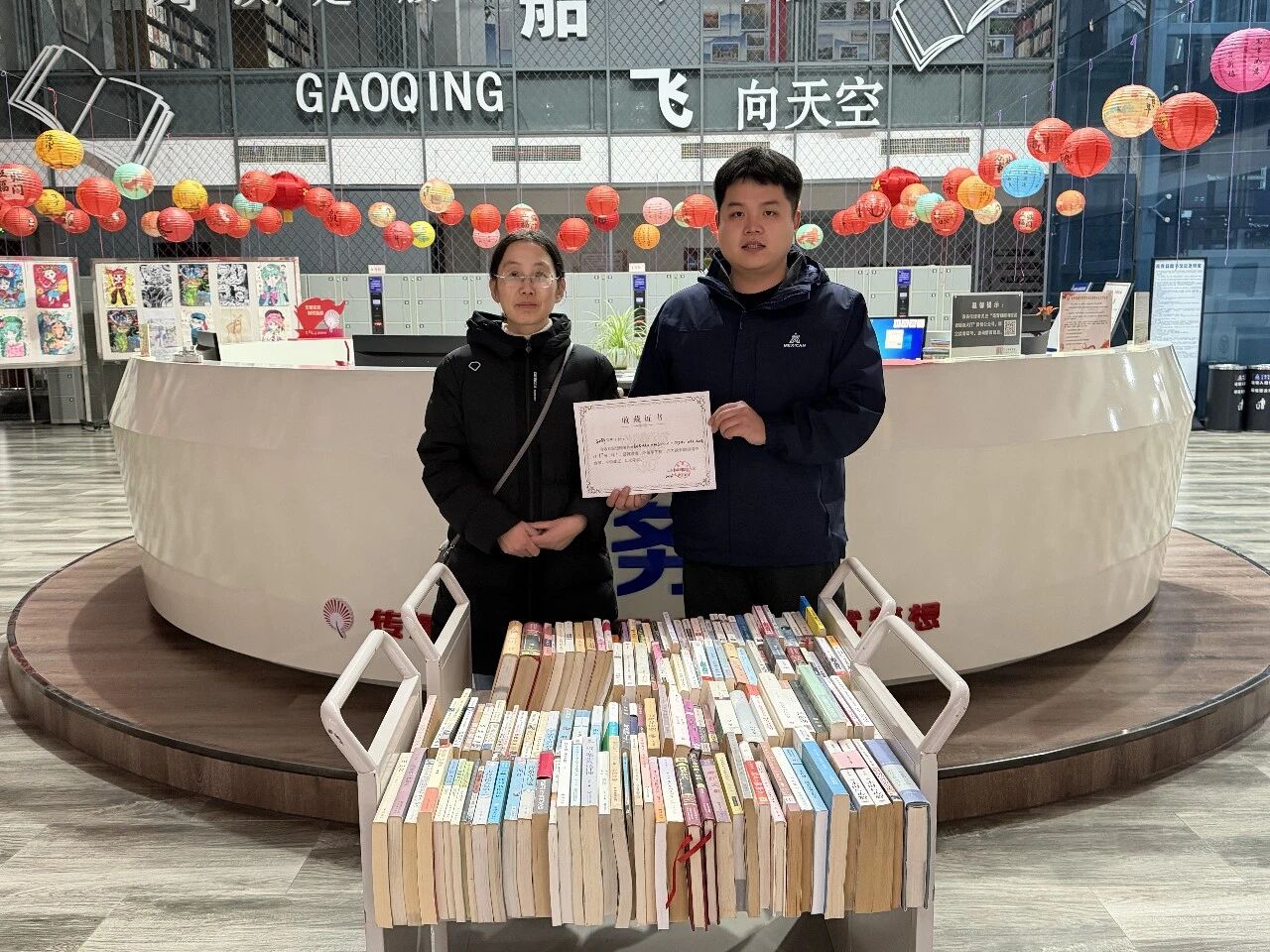 2月21日上午,爱心人士张子娴女士将自己家中闲置的《骆驼祥子》《朝花夕拾》《站在巨人的肩膀上》等散文类、儿童绘本读物30余册无偿捐赠给我馆,便于更多读者及孩子们阅读。
