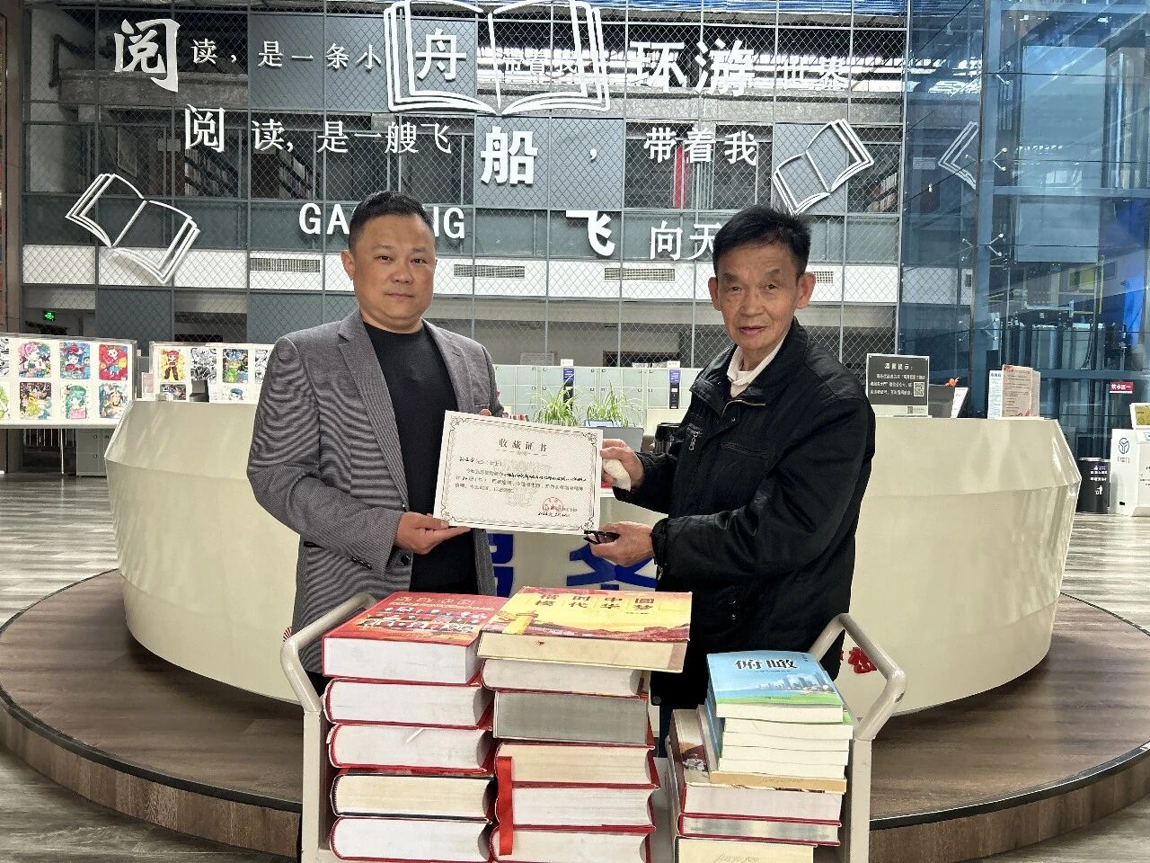 3月26日,热心市民孙玉国先生将自己编撰的《俯瞰-灵感新知哪里来》及个人珍藏多年的《圆梦中华时代楷模》《求是先锋:新常态下中国改革与发展的理论与实践》《国学大典》等20余册党史理论类图书无偿捐赠给图书馆。