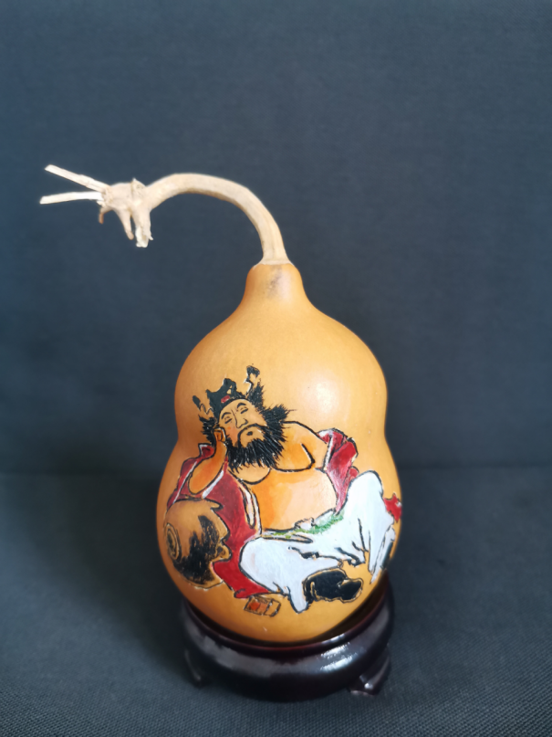 作为高青县葫芦文化的重要代表,“胡氏”葫芦烙画是集书法、绘画与雕刻于一体的综合性民间艺术。除烙刻外,还常辅以针刻、彩绘、镂空等技法,令葫芦焕发全新生命力。其工序繁复,需经去皮、晾晒、打磨、烙画等多道流程,并强调“依形造景”,依据每只葫芦的自然形态进行创作,使每件作品都独一无二。题材多取自中国传统吉祥图案、历史人物、唐诗宋词等,风格古朴典雅,韵味悠长。