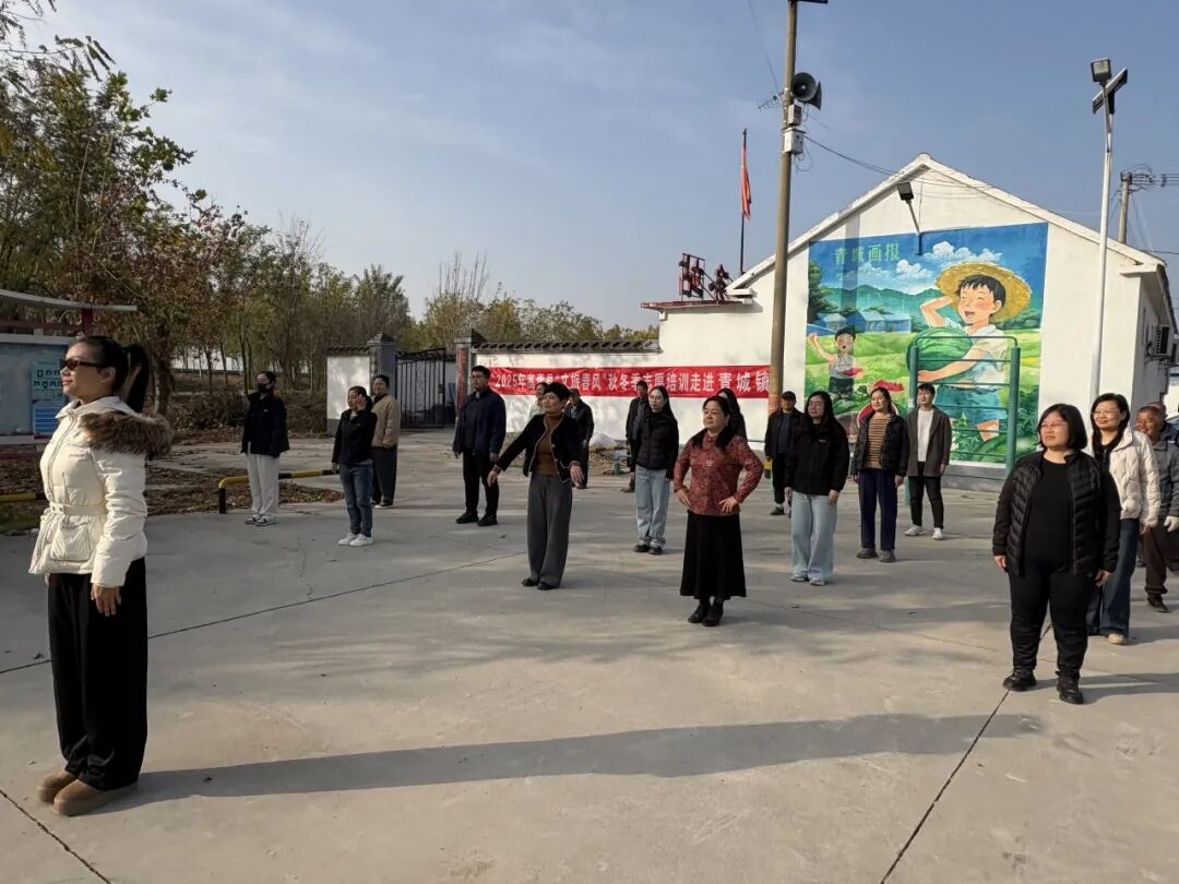 今年的主题培训内容,是由县文化馆精心创编的拍打操,背景音乐正是我县荣获2025年中国农民丰收节村歌大赛一等奖的原创歌曲——《村晚,嗨起来!》。轻快的旋律,简单的动作,适合所有年龄,带动身心一起“嗨”起来!