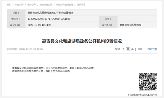 高青县文化和旅游局政府信息公开指南