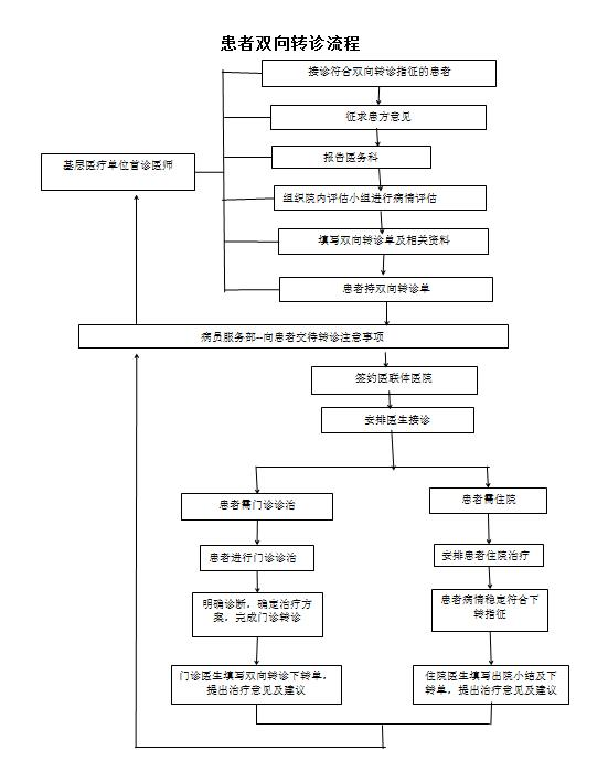 (五)实行双向转诊制度。转入上一级医疗卫生机构的患者,对诊断明确,经治疗病情稳定,可在下一级医疗卫生机构进行治疗和康复的,应转回下一级医疗卫生机构。