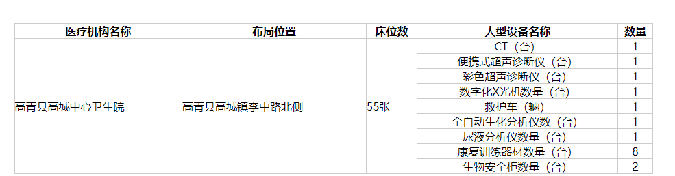 高青县高城中心卫生院2024年第一季度床位、大型设备等资源配置情况