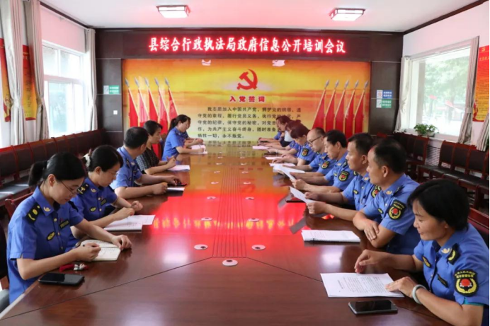 为传达全市政府信息依申请公开工作培训电视电话会议精神,贯彻落实县政府办公室关于政府信息公开工作的部署要求,8月17日,县综合行政执法局组织召开政府信息公开工作培训会议。各科室相关负责同志参加培训。