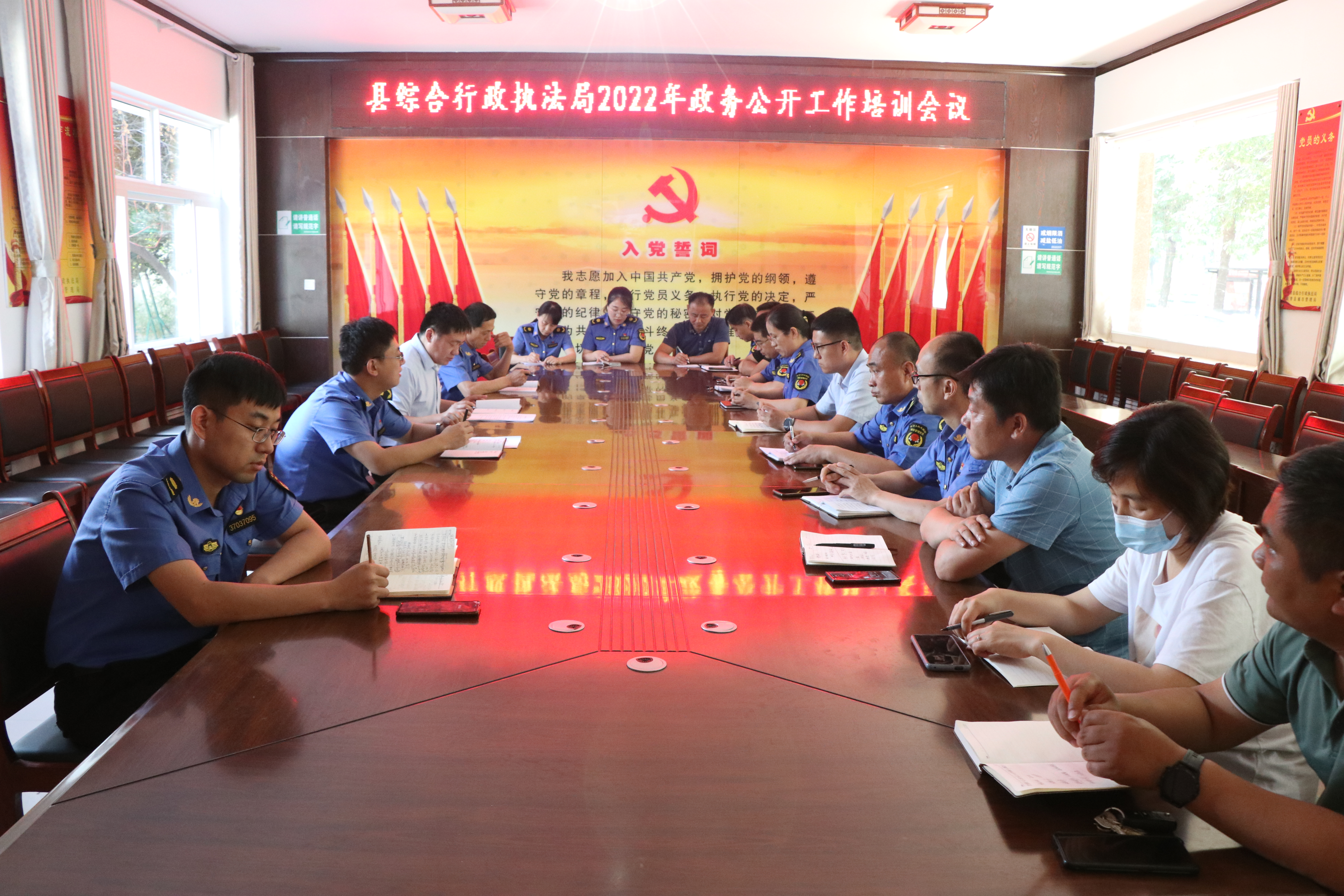 为进一步推动政务公开工作提质增效,全面提升政务公开水平,6月14日,县综合行政执法局召开2022年度政务公开工作培训会议,党组成员、副局长周昕同志主持会议并讲话,机关各科室、执法大队综合科、城市管理服务中心综合科及美雅环卫公司、馨泽园林公司、浙江波普公司负责人参加会议。
