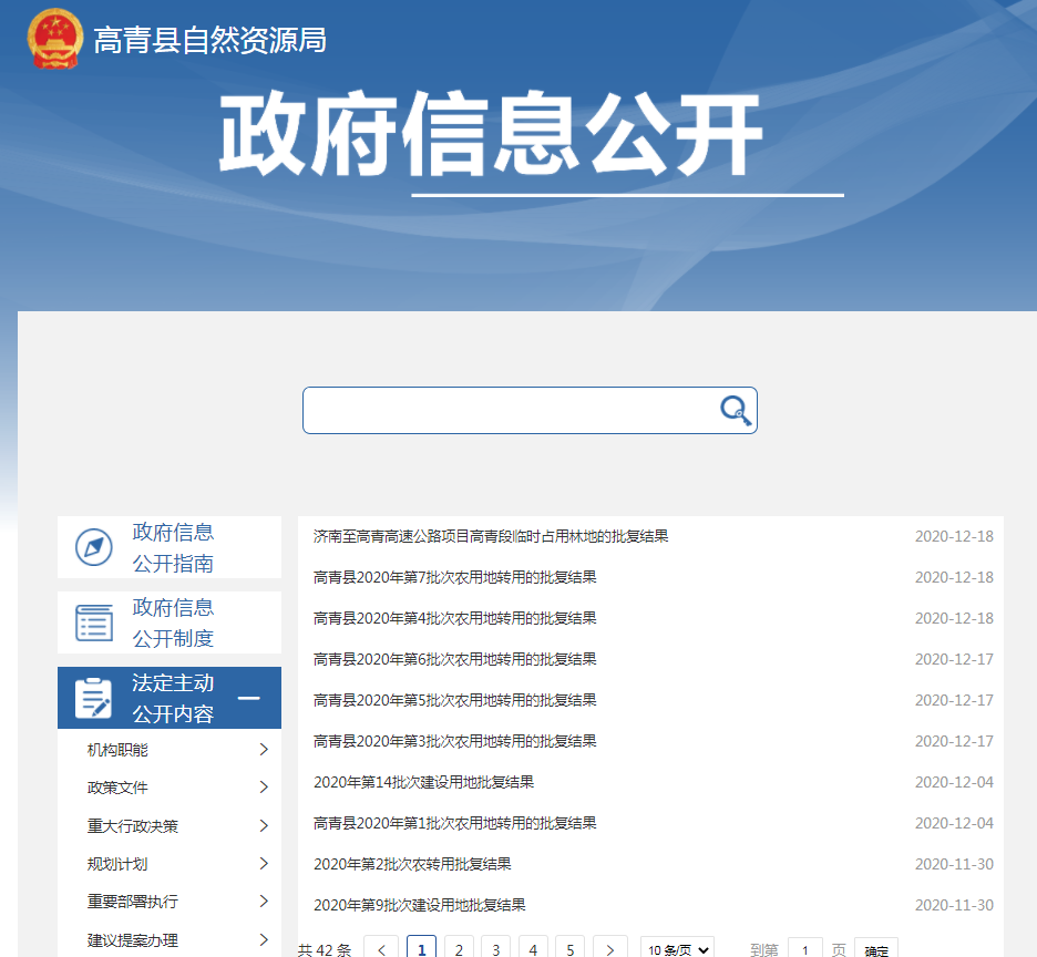 高青县自然资源局政府信息公开指南