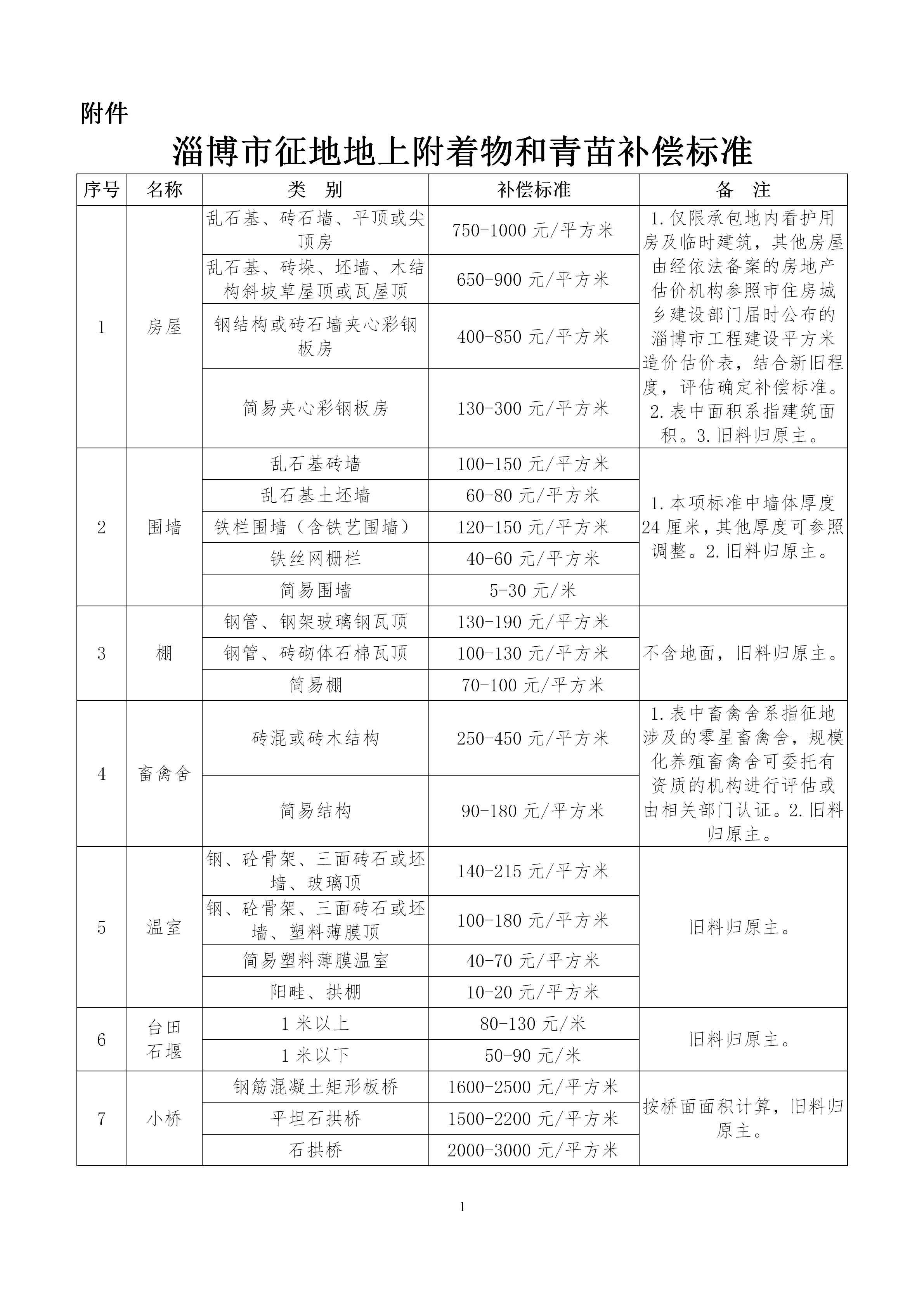 你市《关于审批淄博市征地地上附着物和青苗补偿标准的请示》(淄自然规划呈〔2021〕643号)收悉。经研究,同意你市制定的征地地上附着物和青苗补偿标准(详见附件)。