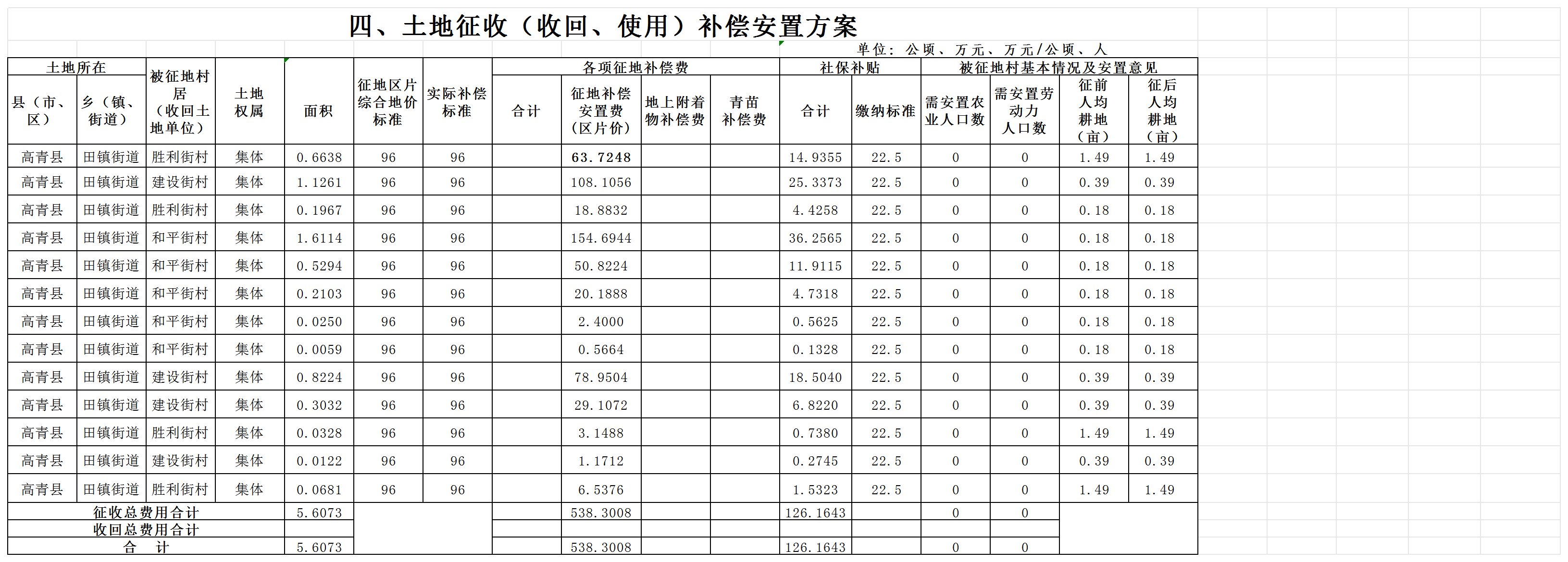 土地征收(收回、使用)补偿安置方案(第1批次建设用地)