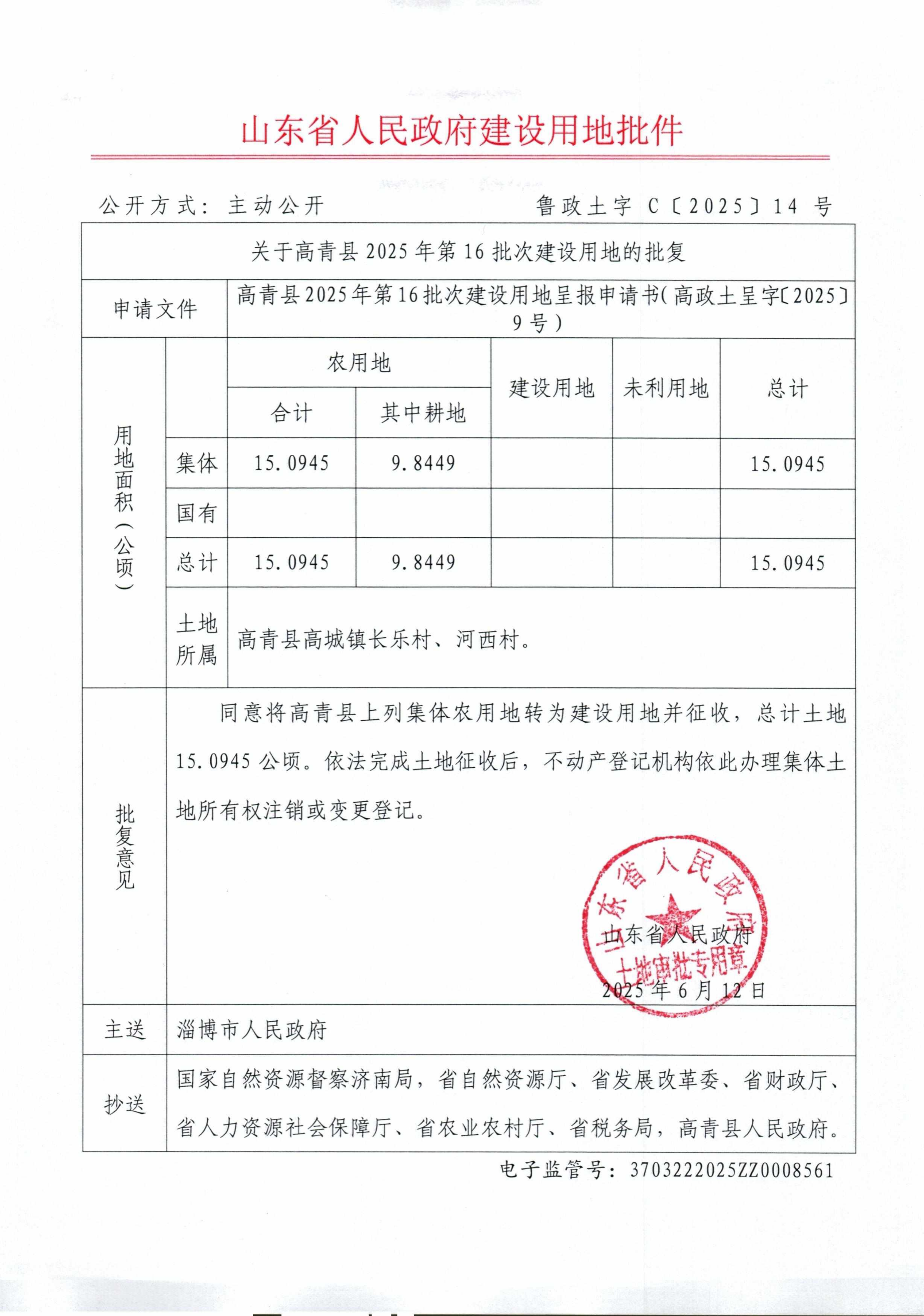 高青县2025年第16批次建设用地批文
