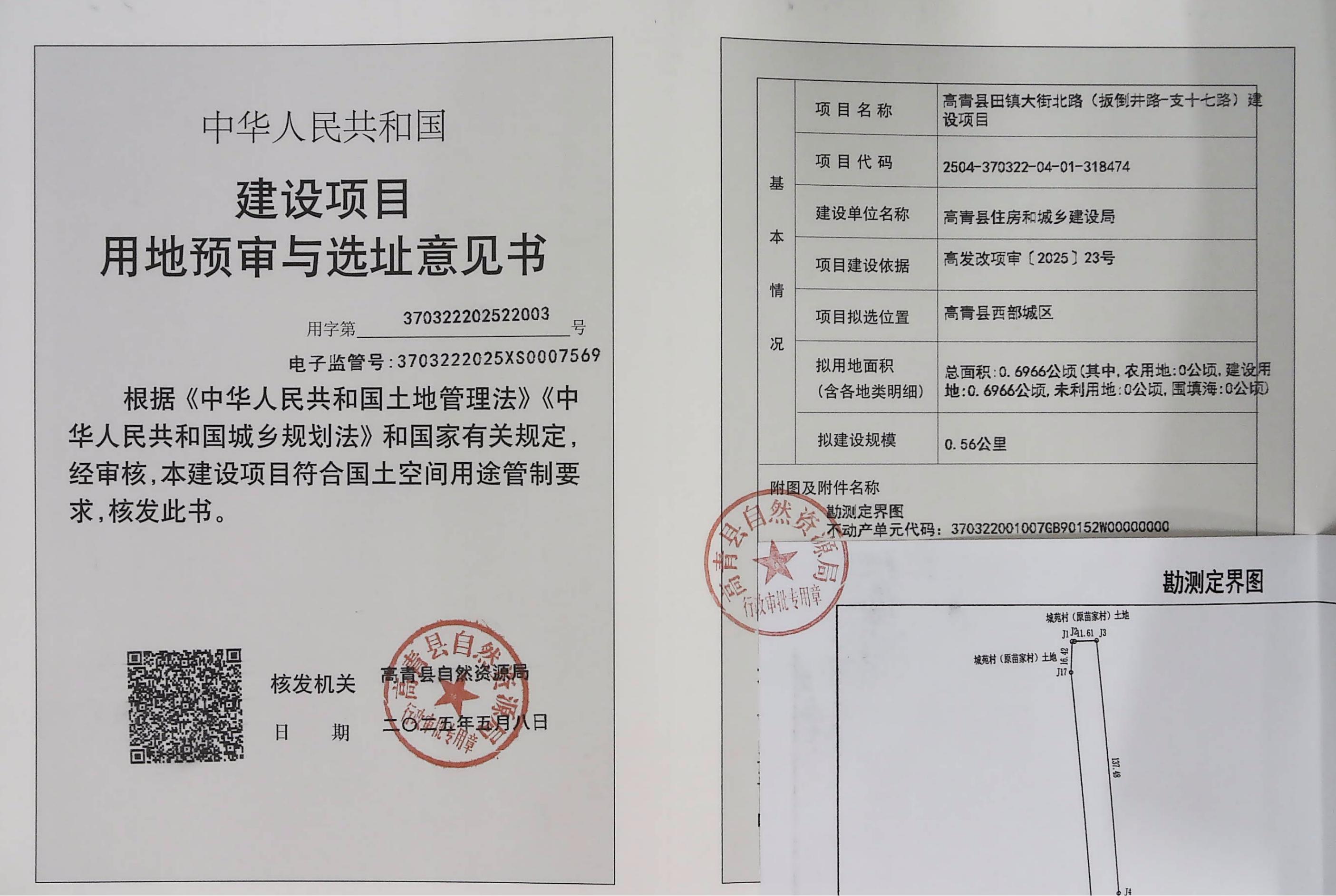 高青县田镇大街北路(扳倒井路-支十七路)建设项目