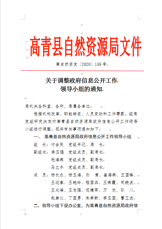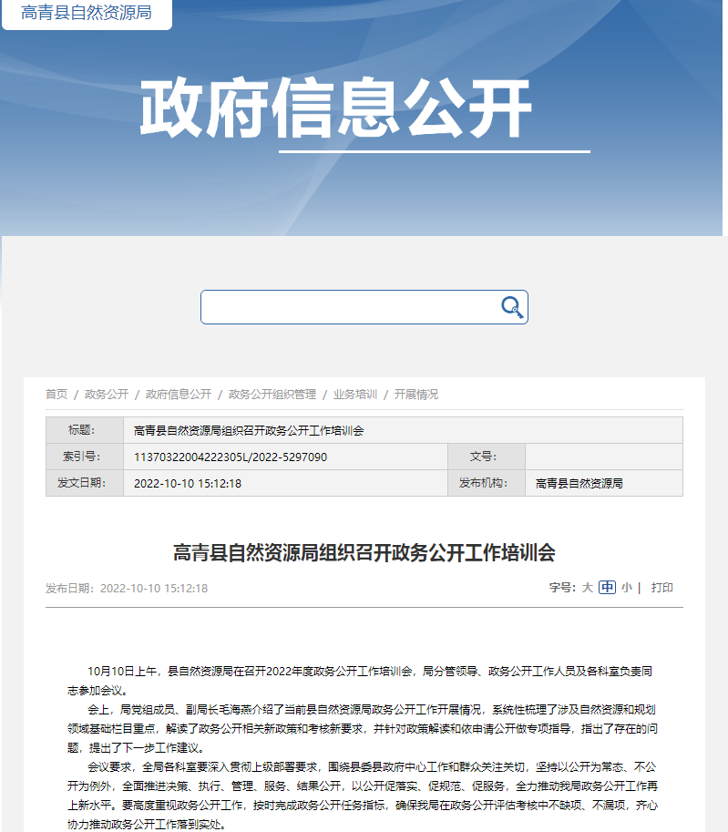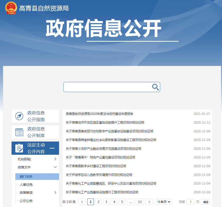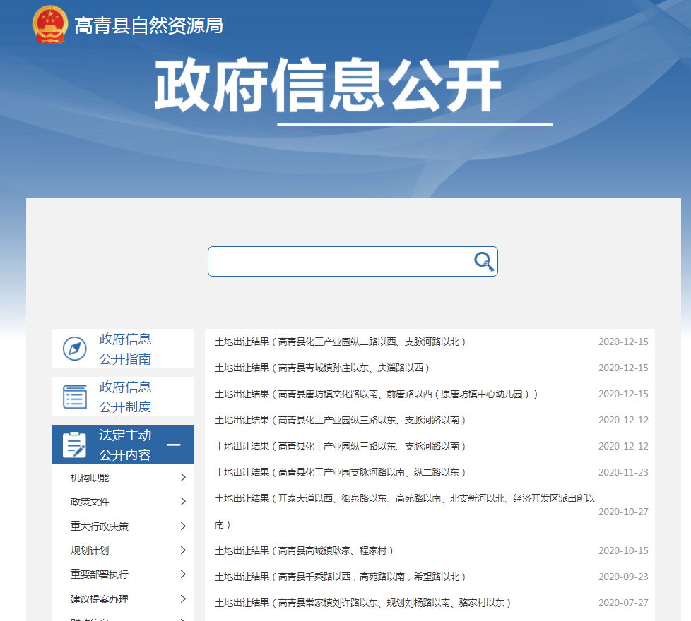 高青县自然资源局政府信息公开指南